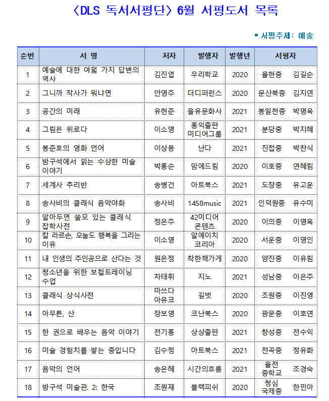 DLS µ¶¼­¼­Æò´ÜÀÌ ÃßõÇÏ´Â 6¿ù ¼­Æòµµ¼­¸¦ ºÙÀÓ°ú °°ÀÌ ¾È³»ÇÕ´Ï´Ù.