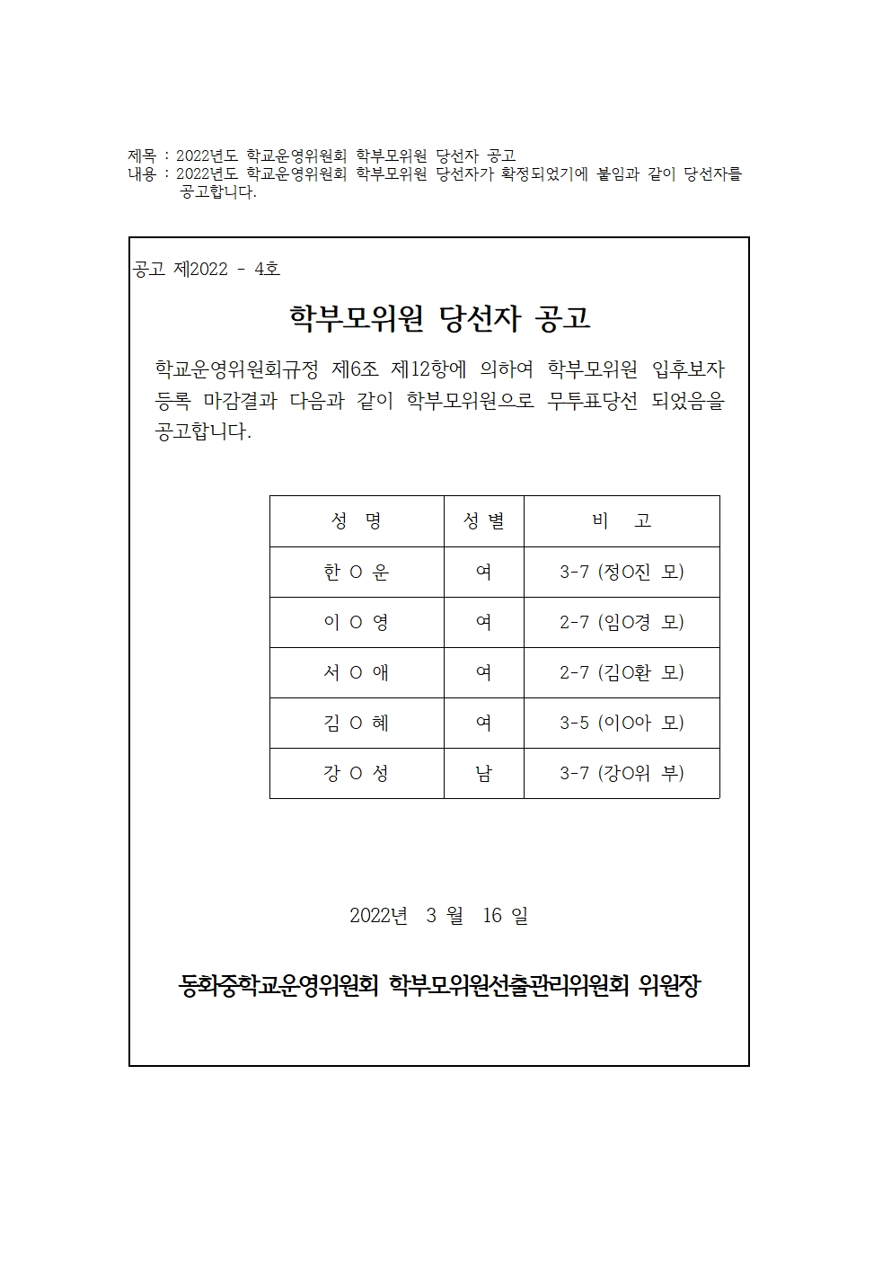 2022Çг⵵ Çб³¿î¿µÀ§¿øÈ¸ ÇкθðÀ§¿ø ´ç¼± °ø°í