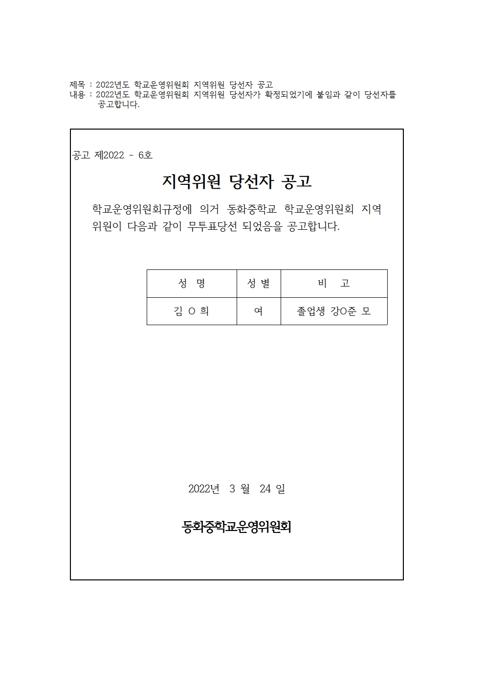 2022Çг⵵ Çб³¿î¿µÀ§¿øÈ¸ Áö¿ªÀ§¿ø ´ç¼±ÀÚ °ø°í