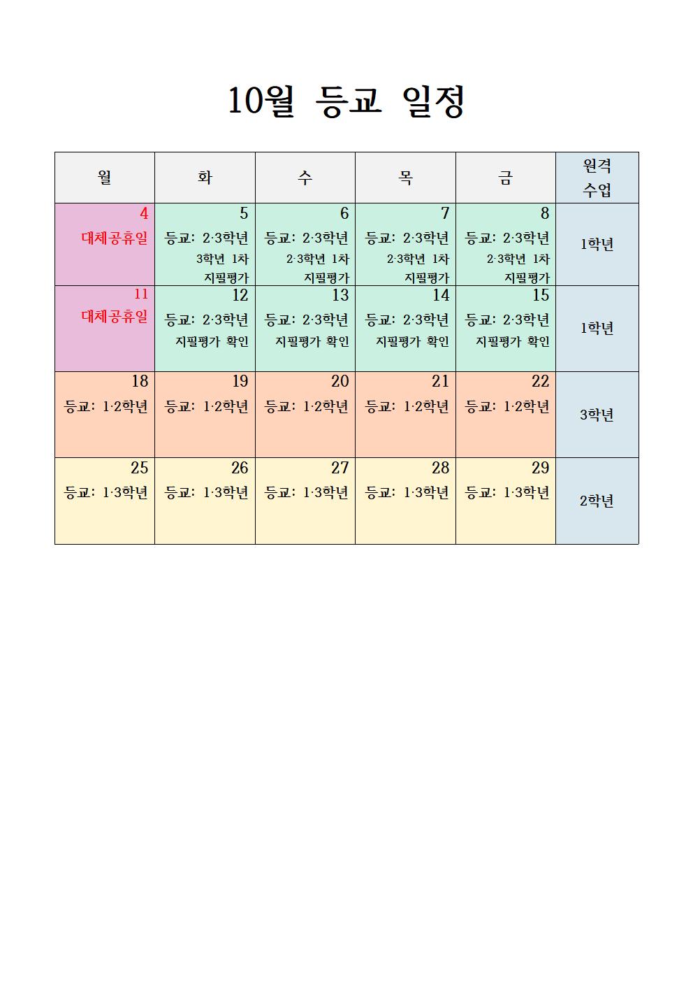 10¿ù µî±³ ÀÏÁ¤ ¾È³»