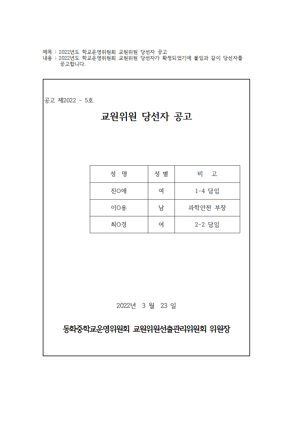 2022Çг⵵ Çб³¿î¿µÀ§¿øÈ¸ ±³¿ø À§¿ø ´ç¼±ÀÚ °ø°í