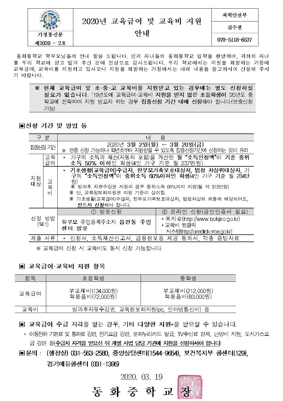 2020³â ±³À°±Þ¿© ¹× ±³À°ºñÁö¿ø ¾È³»