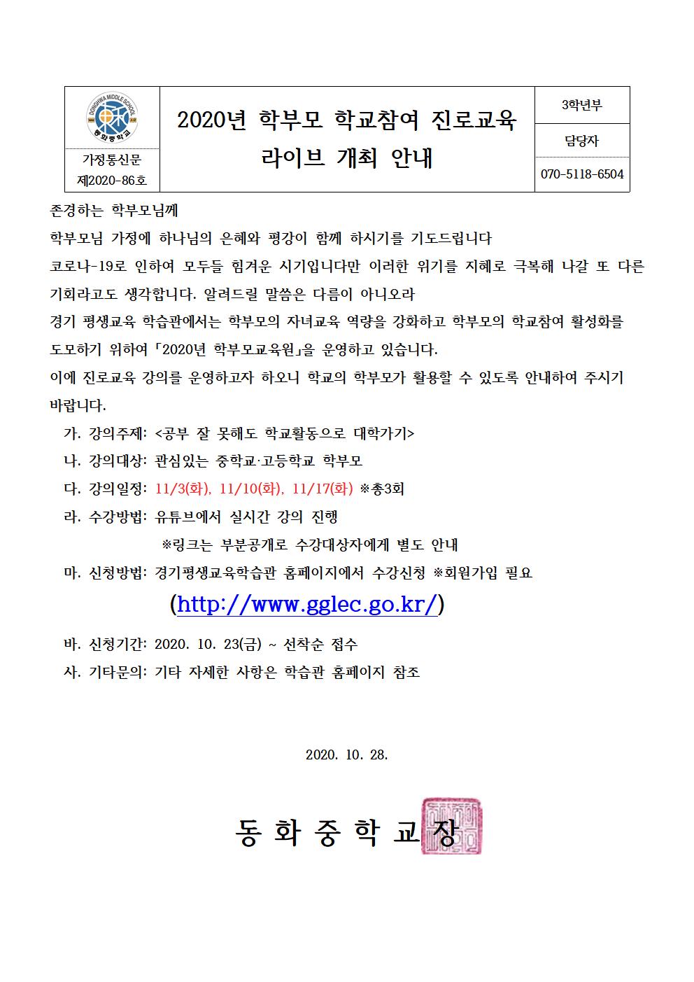 2020³â Çкθð Çб³Âü¿© Áø·Î±³À° ¶óÀÌºê °³ÃÖ ¾È³»