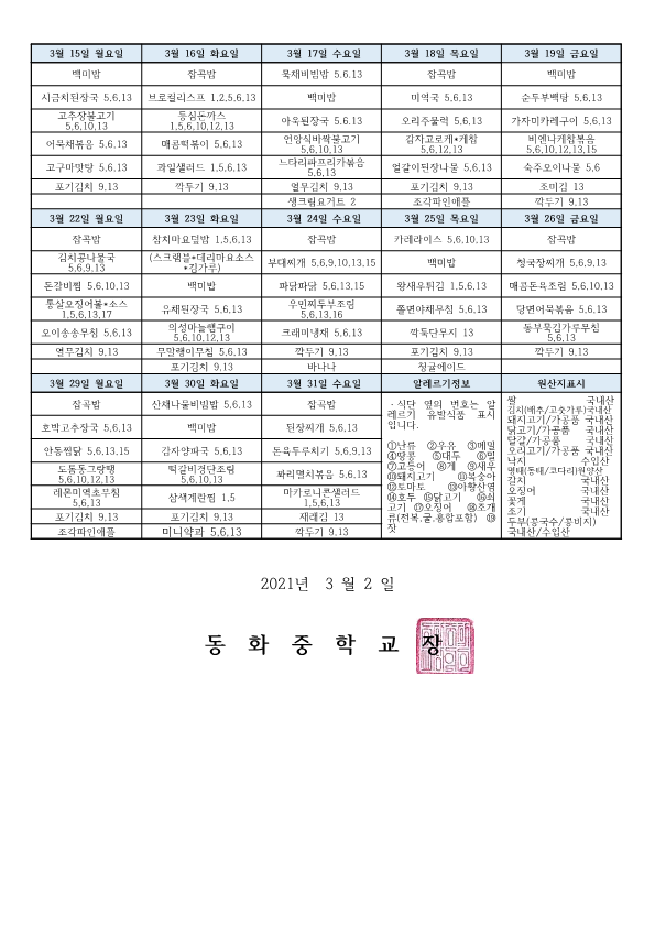 µ¿È­ÁßÇб³°¡ âÀÛÇÑ À§Å¹±Þ½Ä ¾È³» ¹× 3¿ù ½Ä´ÜÇ¥ ÀúÀÛ¹°Àº '°ø°ø´©¸®' Ãâóǥ½Ã-»ó¾÷ÀûÀÌ¿ë±ÝÁö-º¯°æ±ÝÁö Á¶°Ç¿¡ µû¶ó ÀÌ¿ë ÇÒ ¼ö ÀÖ½À´Ï´Ù.