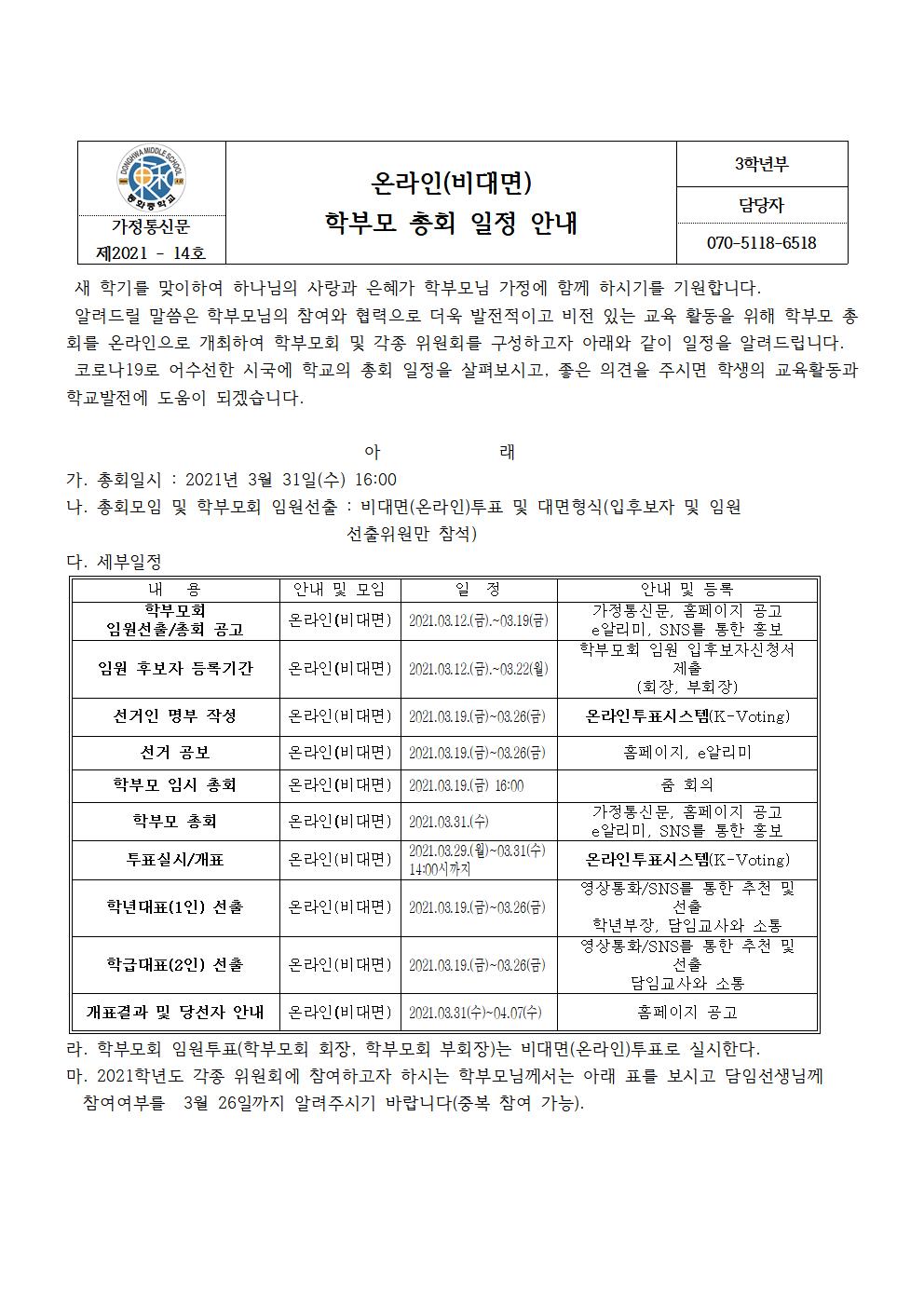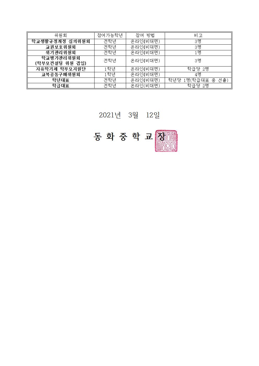 µ¿È­ÁßÇб³ Çкθðȸ ÀÓ¿ø ¼±Ãâ °ø°í