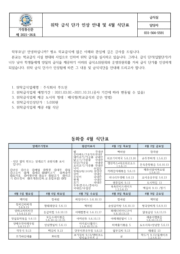 À§Å¹ ±Þ½Ä ´Ü°¡ Àλó ¾È³» ¹× 4¿ù ½Ä´ÜÇ¥