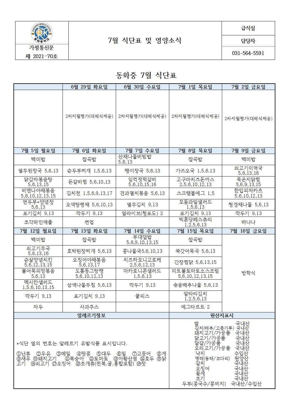 7¿ù ½Ä´ÜÇ¥ ¹× ¿µ¾ç¼Ò½Ä