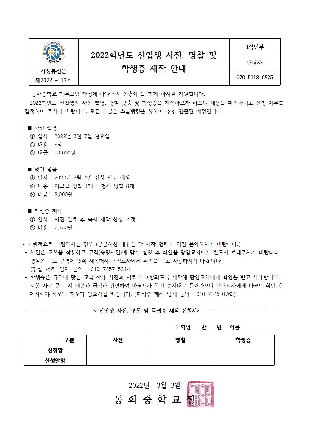 2022Çг⵵ ½ÅÀÔ»ýÀÇ »çÁø ÃÔ¿µ, ¸íÂû ¸ÂÃã ¹× ÇлýÁõ Á¦ÀÛ ¾È³»