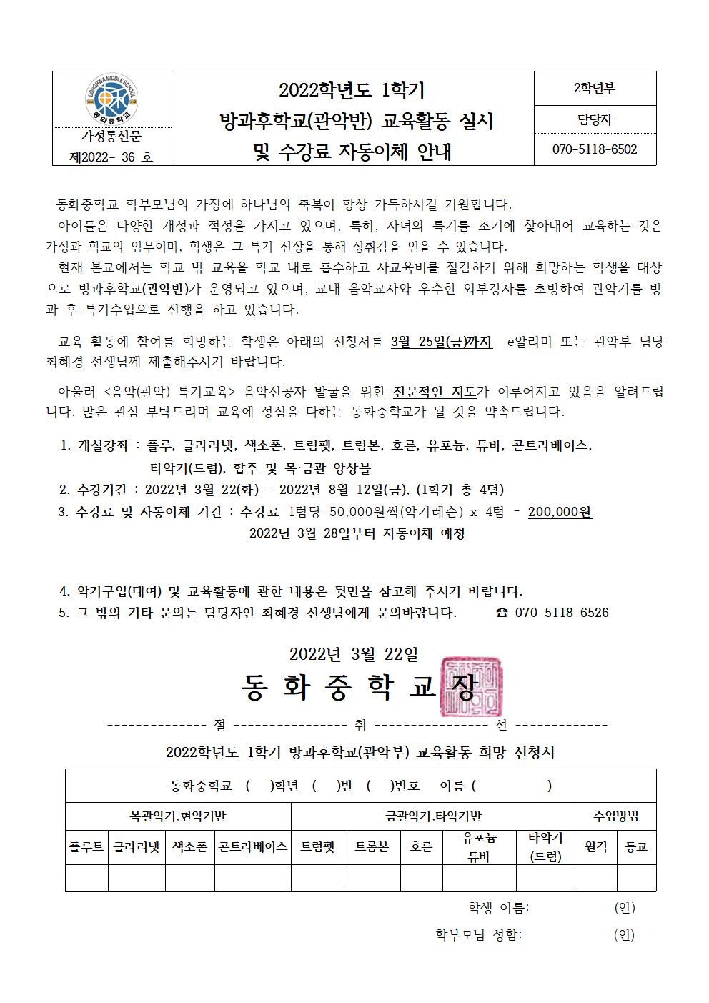 2022Çг⵵ 1Çб⠹æ°úÈÄÇб³(°ü¾Ç¹Ý) ±³À°È°µ¿ ½Ç½Ã ¹× ¼ö°­·á ÀÚµ¿ÀÌü ¾È³» °¡Á¤Åë½Å¹®ÀÔ´Ï´Ù.