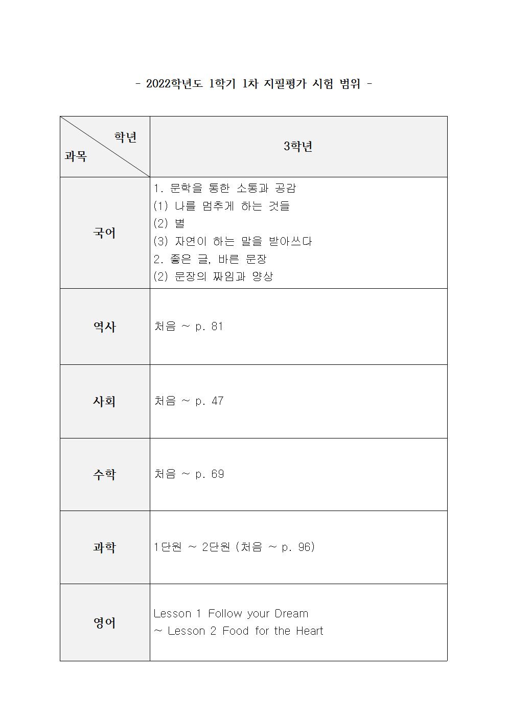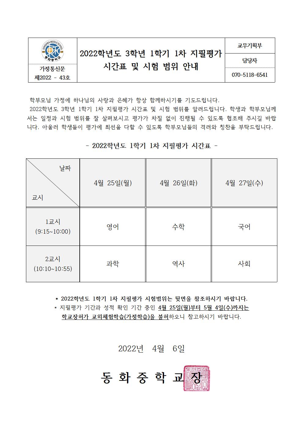 2022Çг⵵ 3Çгâ 1Çбâ 1Â÷ ÁöÇÊÆò°¡ ½Ã°£Ç¥ ¹× ½ÃÇè¹üÀ§ ¾È³»