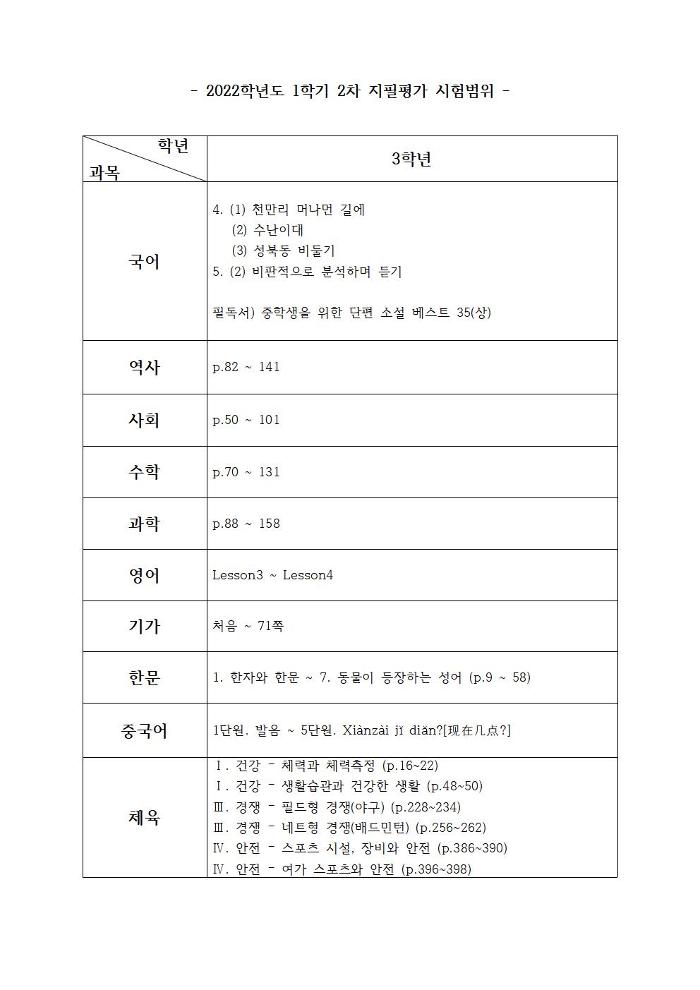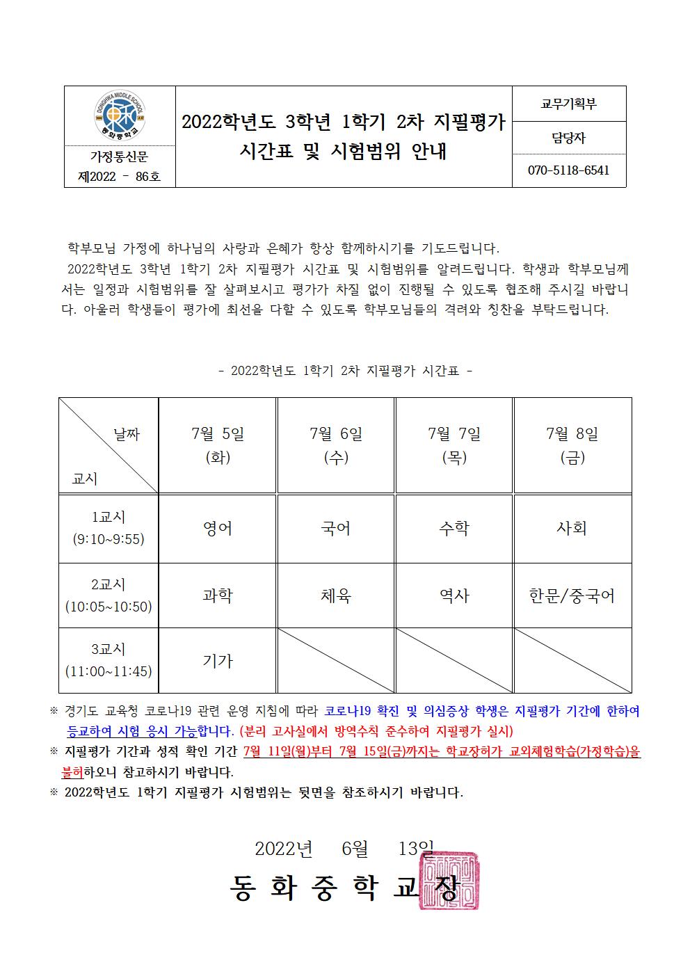 2022Çг⵵ 3Çгâ 1Çбâ 2Â÷ ÁöÇÊÆò°¡ ½Ã°£Ç¥ ¹× ½ÃÇè¹üÀ§ ¾È³» °¡Á¤Åë½Å¹®