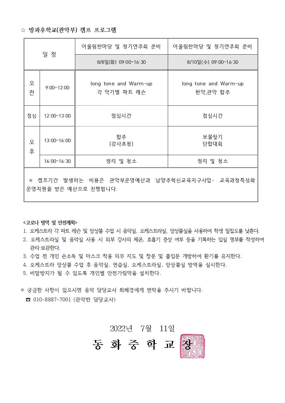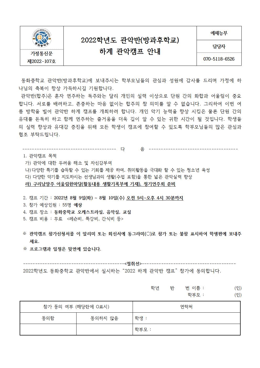 2022Çг⵵ °ü¾Ç¹Ý(¹æ°úÈÄÇб³) ÇÏ°è °ü¾Ç Ä·ÇÁ ¾È³» °¡Á¤Åë½Å¹®