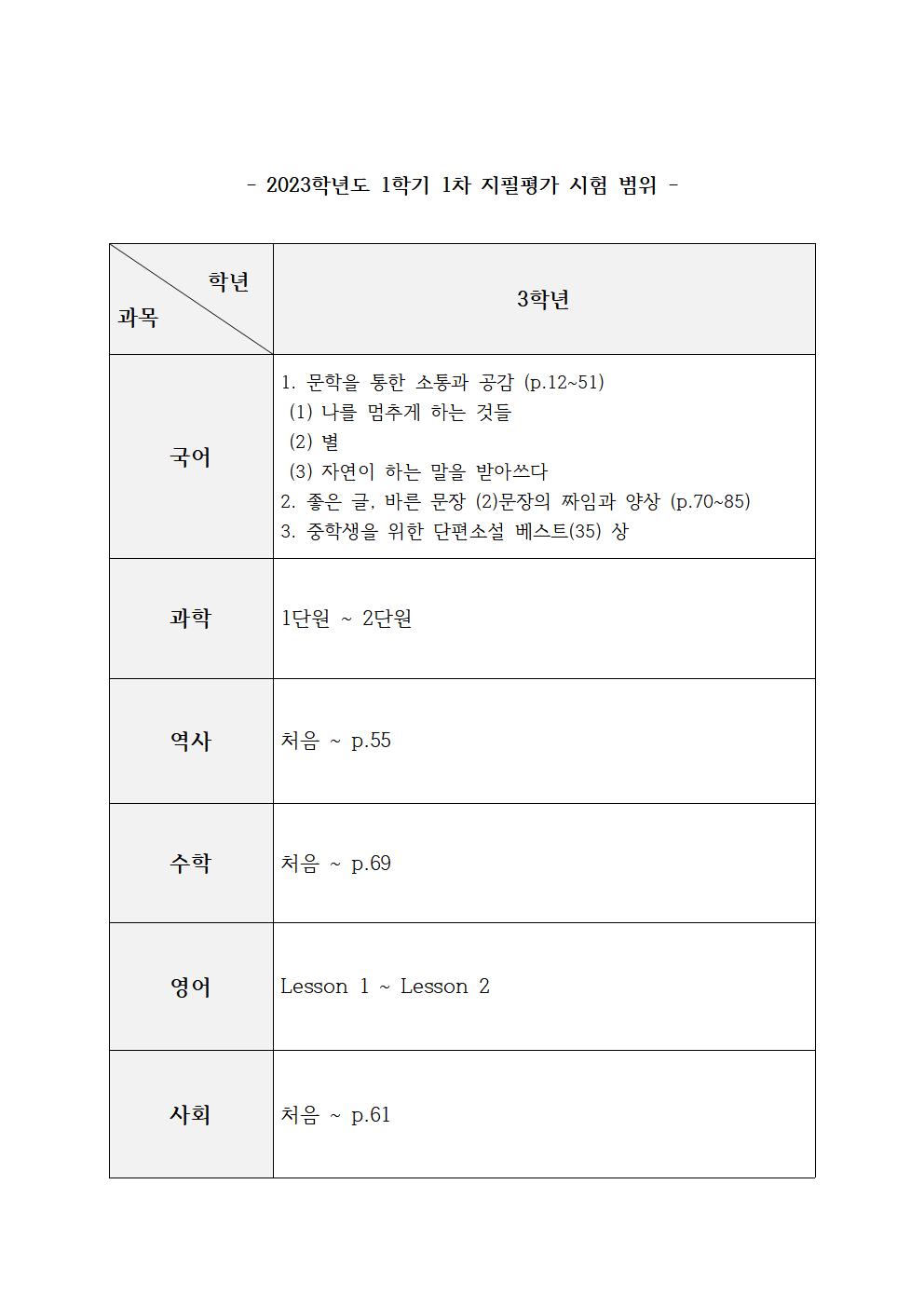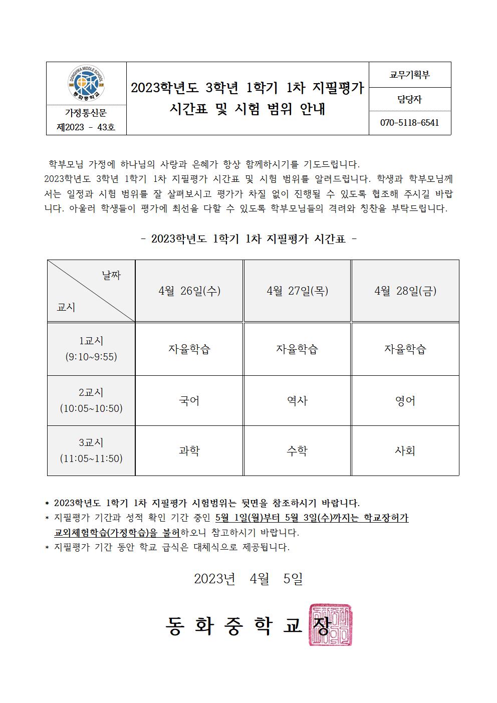2023Çг⵵ 3Çгâ 1Çбâ 1Â÷ ÁöÇÊÆò°¡ ½Ã°£Ç¥ ¹× ½ÃÇè ¹üÀ§ ¾È³» °¡Á¤Åë½Å¹®