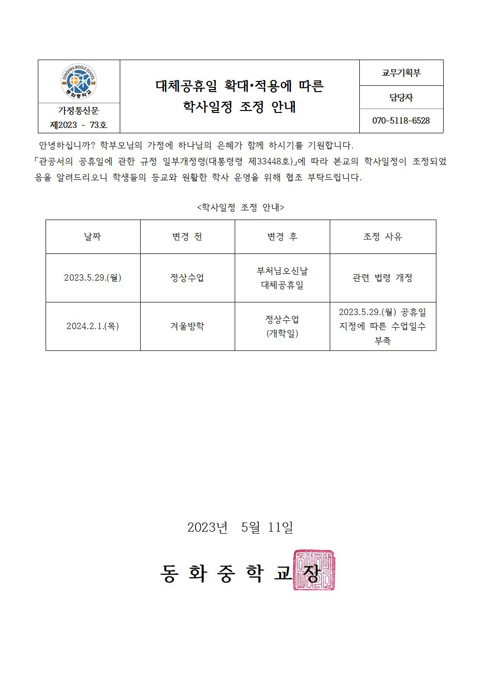 ´ëü°øÈÞÀÏ È®´ë¡¤Àû¿ë¿¡ µû¸¥ ÇлçÀÏÁ¤ Á¶Á¤ ¾È³»