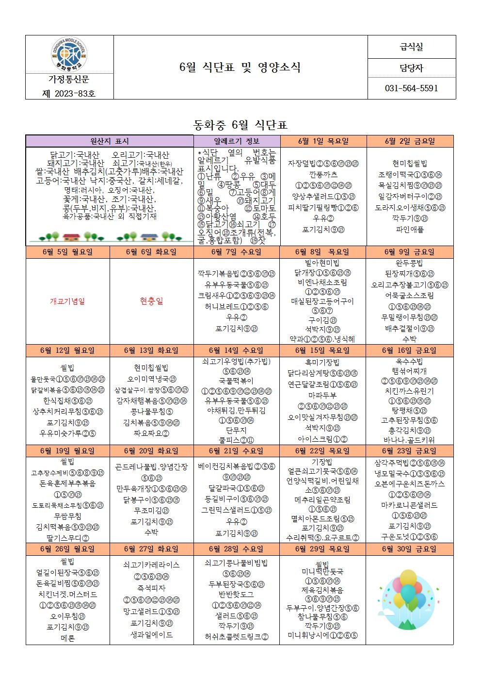hwpÆÄÀÏ ¾ÆÀÌÄÜ 6¿ù ½Ä´ÜÇ¥ ¹× ¿µ¾ç¼Ò½Ä.hwp