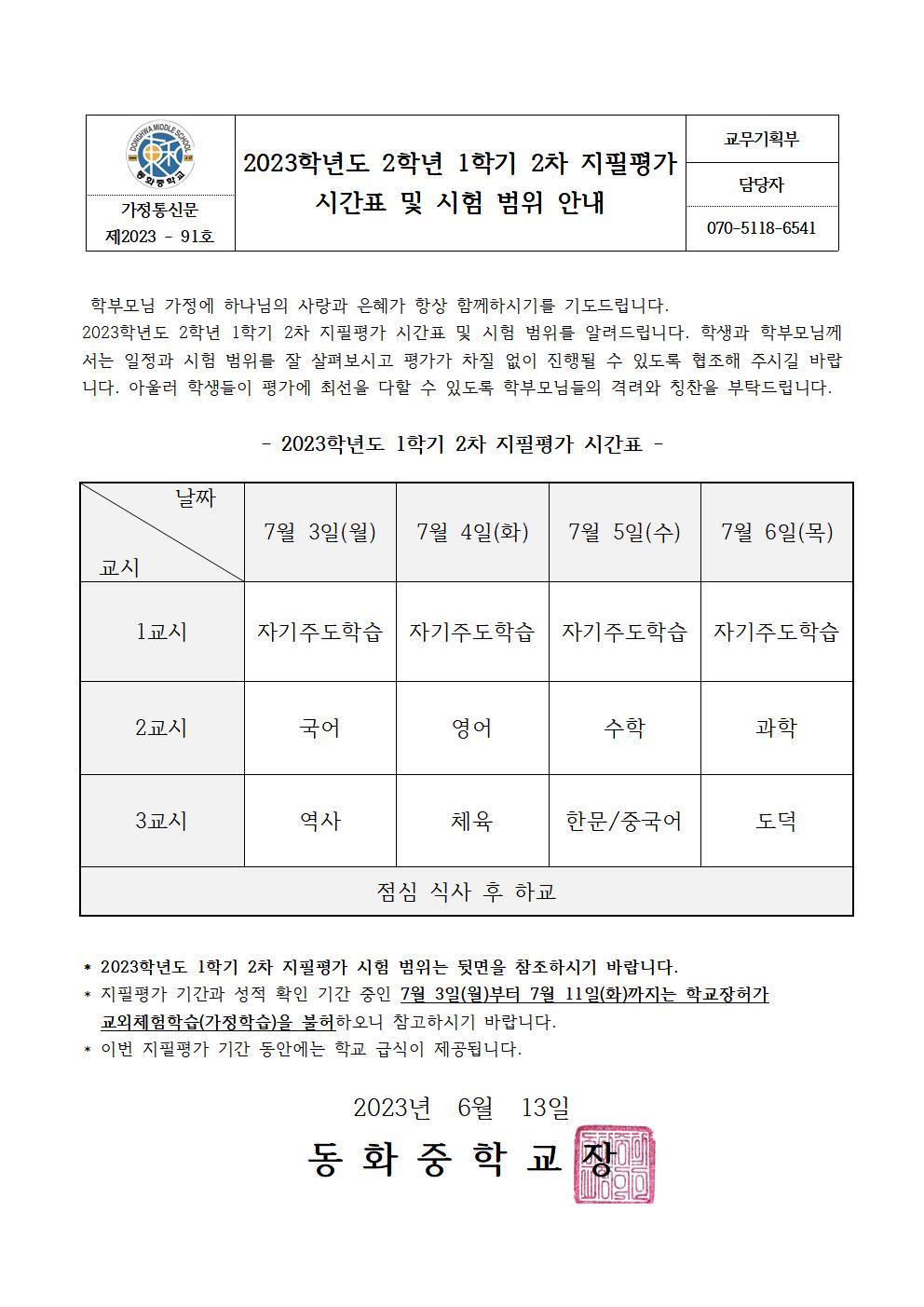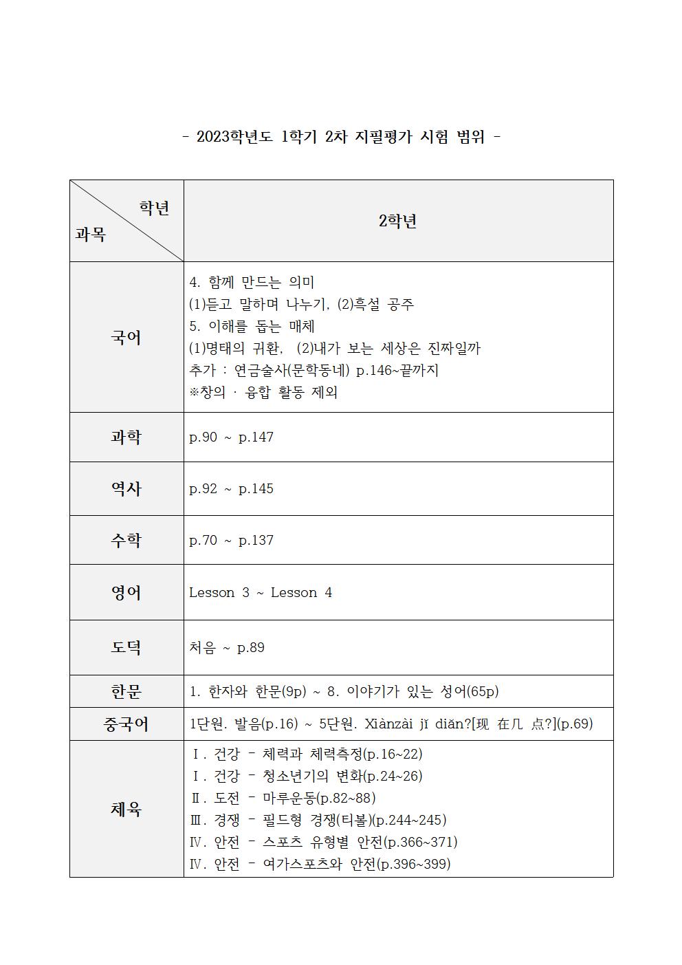 2023Çг⵵ 2Çгâ 1Çбâ 2Â÷ ÁöÇÊÆò°¡ ½Ã°£Ç¥ ¹× ½ÃÇè ¹üÀ§ ¾È³» °¡Á¤Åë½Å¹®