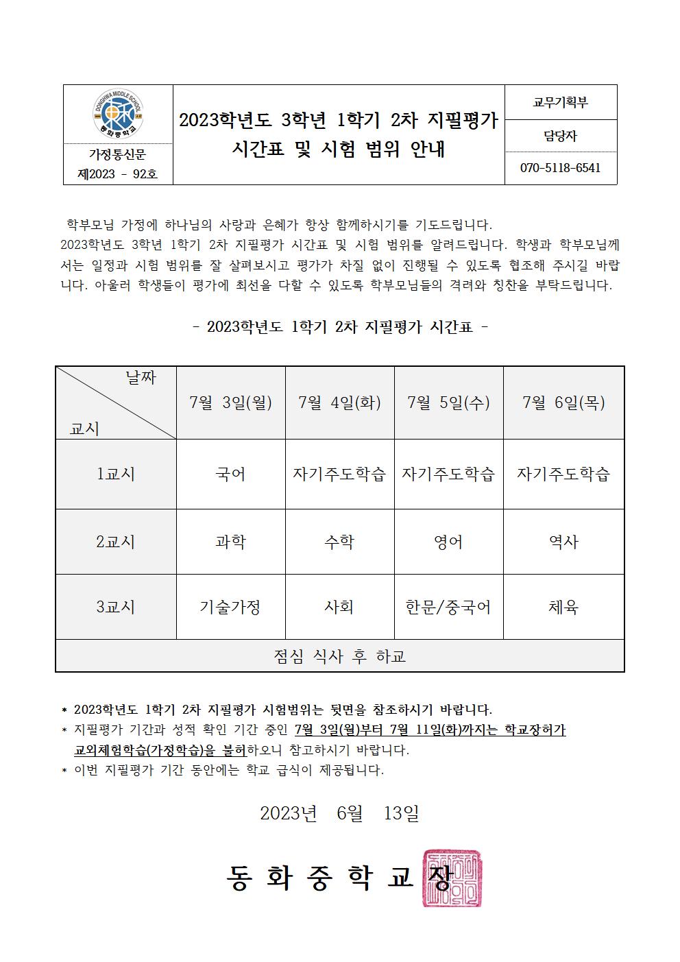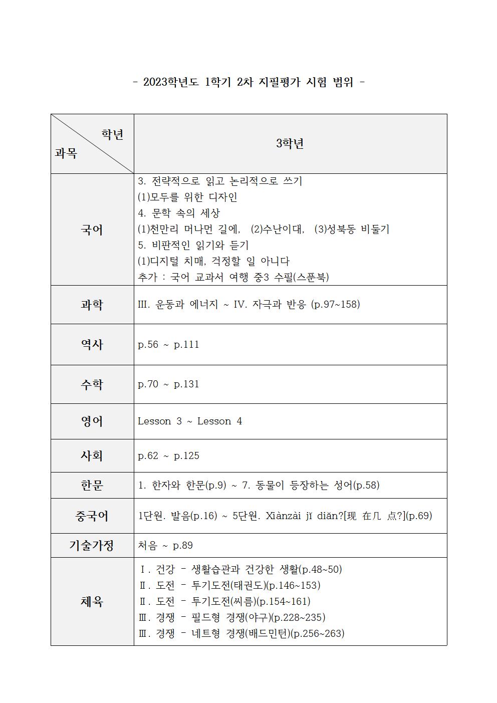 2023Çг⵵ 3Çгâ 1Çбâ 2Â÷ ÁöÇÊÆò°¡ ½Ã°£Ç¥ ¹× ½ÃÇè ¹üÀ§ ¾È³» °¡Á¤Åë½Å¹®