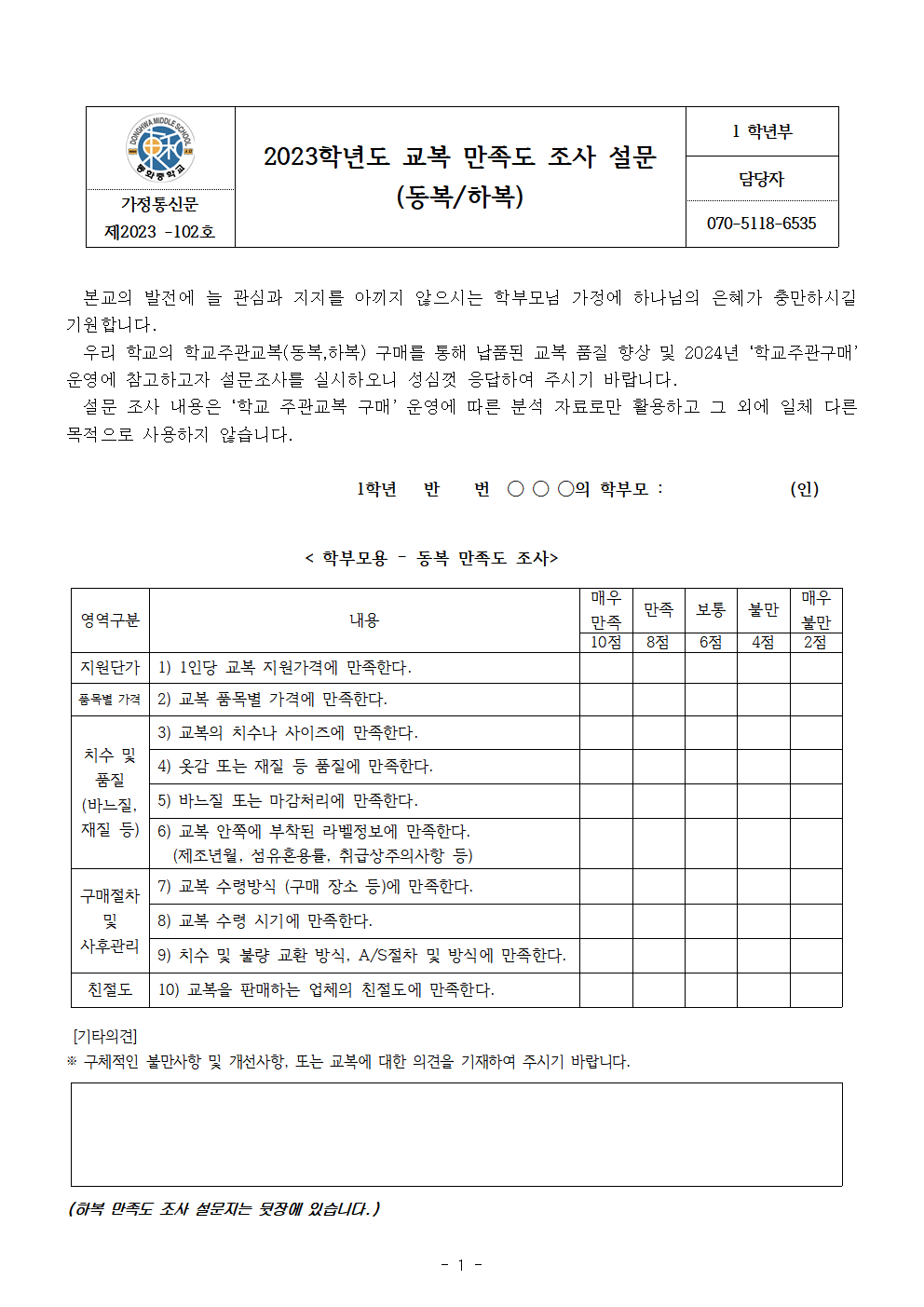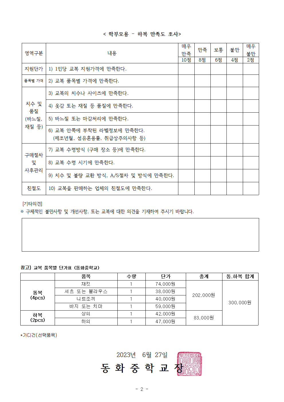 2023Çг⵵ µ¿È­Áß ±³º¹ ¸¸Á·µµ Á¶»ç ¼³¹®(µ¿º¹¡¤ÇϺ¹)