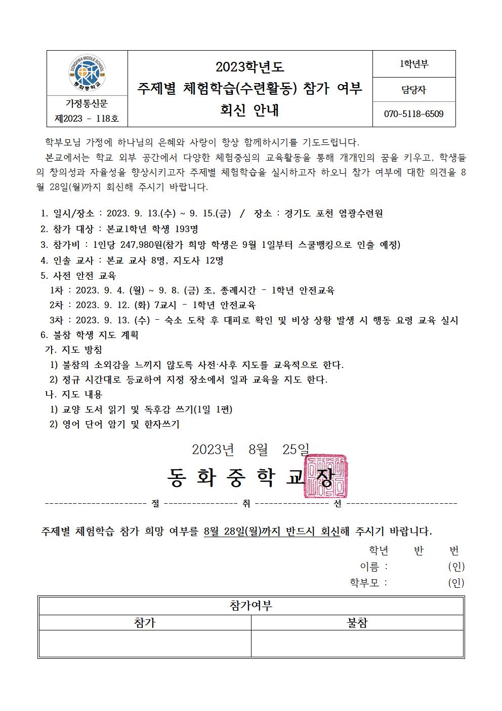 ÁÖÁ¦º° üÇèÇнÀ(¼ö·ÃȰµ¿) Âü°¡ ¿©ºÎ ȸ½Å ¾È³»