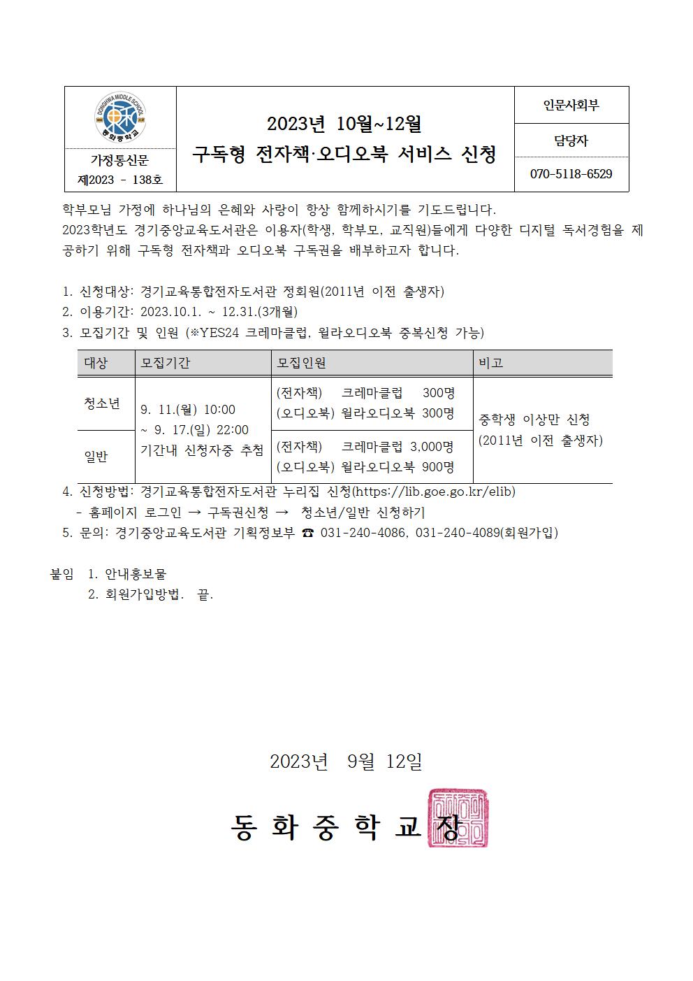 2023³â 10¿ù~12¿ù ±¸µ¶Çü ÀüÀÚÃ¥¡¤¿Àµð¿ÀºÏ ¼­ºñ½º ½Åû ¾È³»