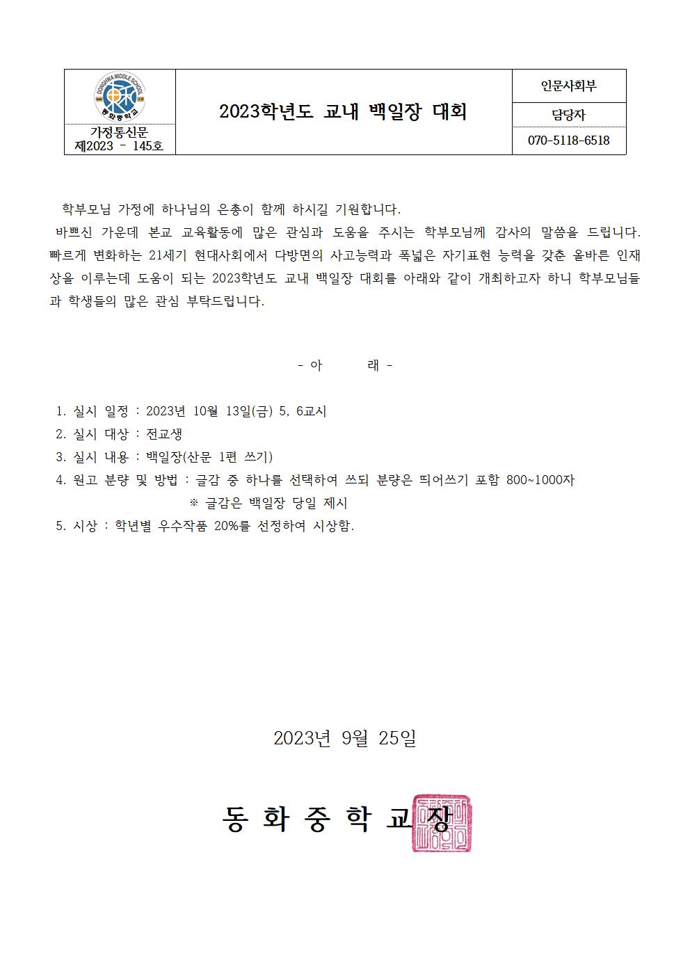 2023Çг⵵ ±³³» ¹éÀÏÀå ´ëȸ ¾È³»
