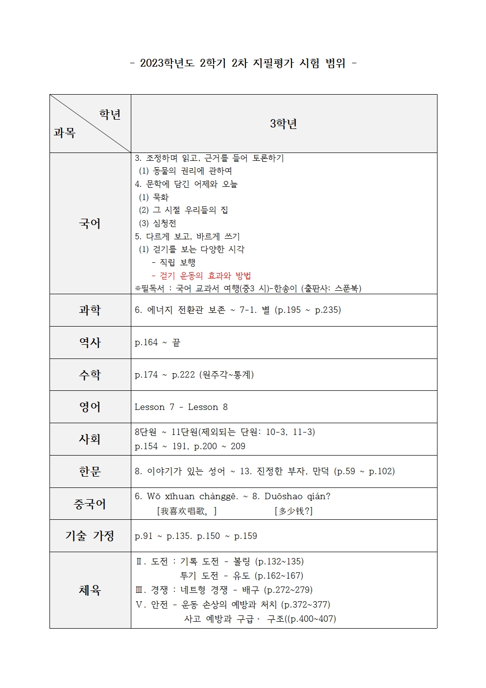 2023Çг⵵ 3Çгâ 2Çбâ 2Â÷ ÁöÇÊÆò°¡ ½Ã°£Ç¥ ¹× ½ÃÇè ¹üÀ§ ¾È³» °¡Á¤Åë½Å¹®(±¹¾î±³°ú Ãß°¡)