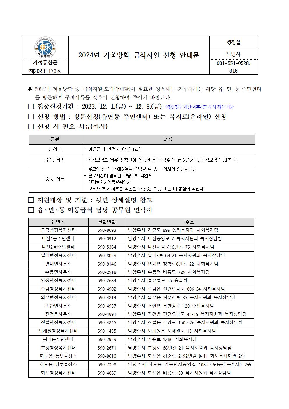 2024³â °Ü¿ï¹æÇÐ ±Þ½ÄÁö¿ø ½Åû ¾È³»¹®