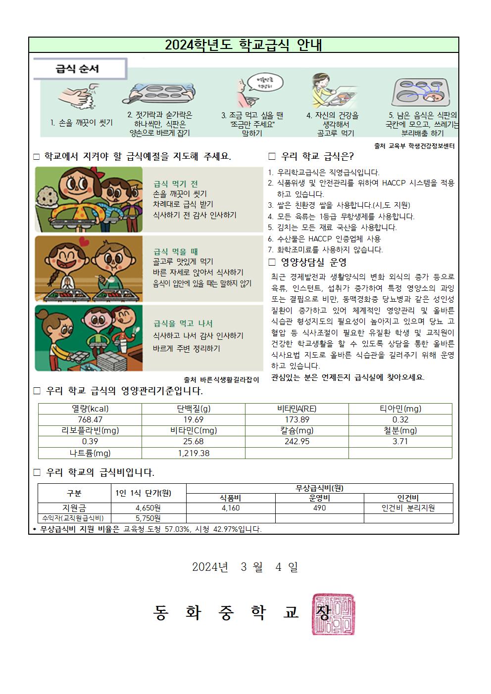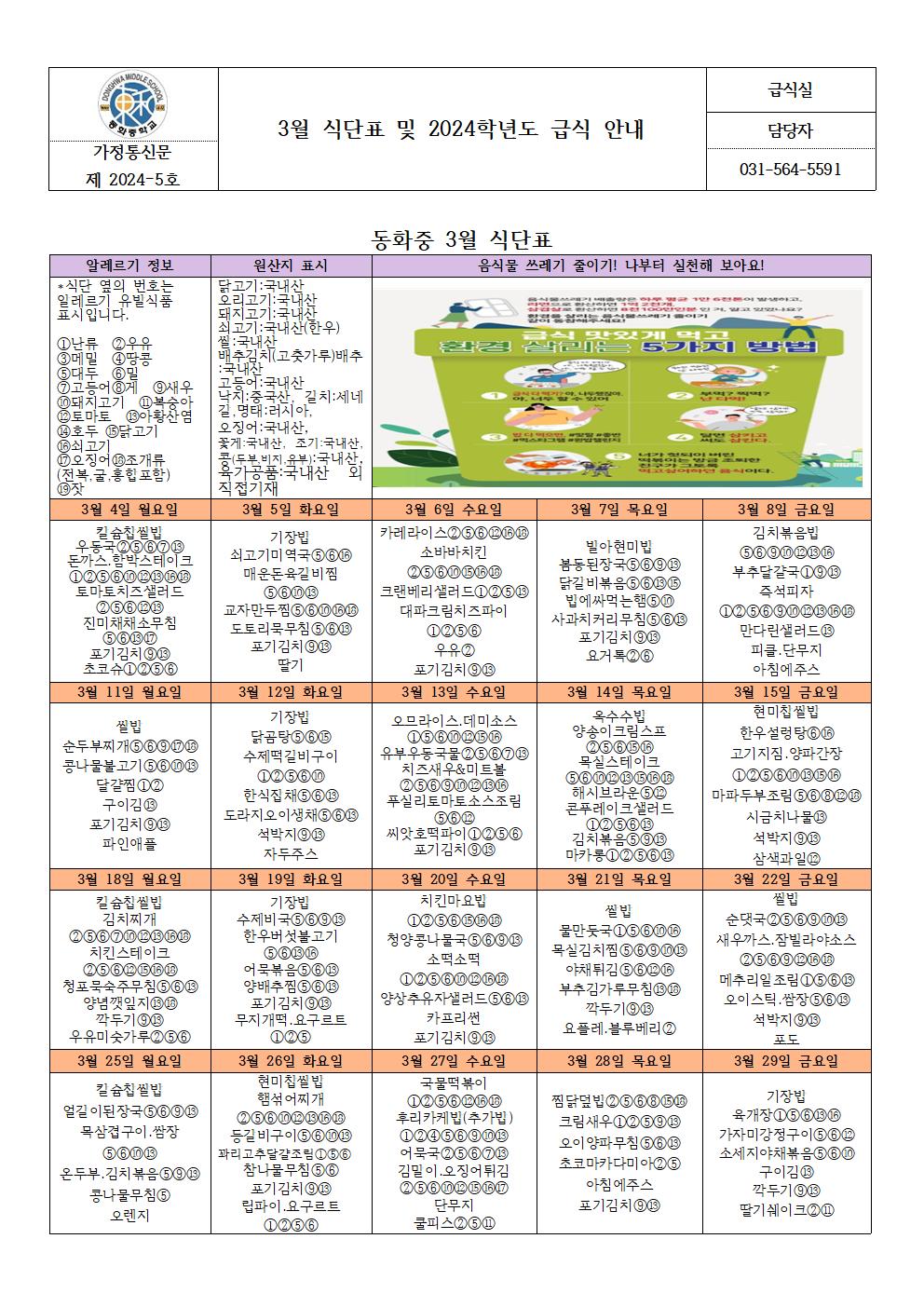 hwpÆÄÀÏ ¾ÆÀÌÄÜ 3¿ù ½Ä´ÜÇ¥ ¹× 2024Çг⵵ ±Þ½Ä¾È³» (µ¿È­Áß).hwp