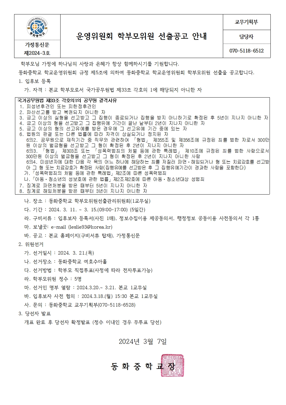 ¿î¿µÀ§¿øÈ¸ ÇкθðÀ§¿ø ¼±Ãâ°ø°í ¾È³»