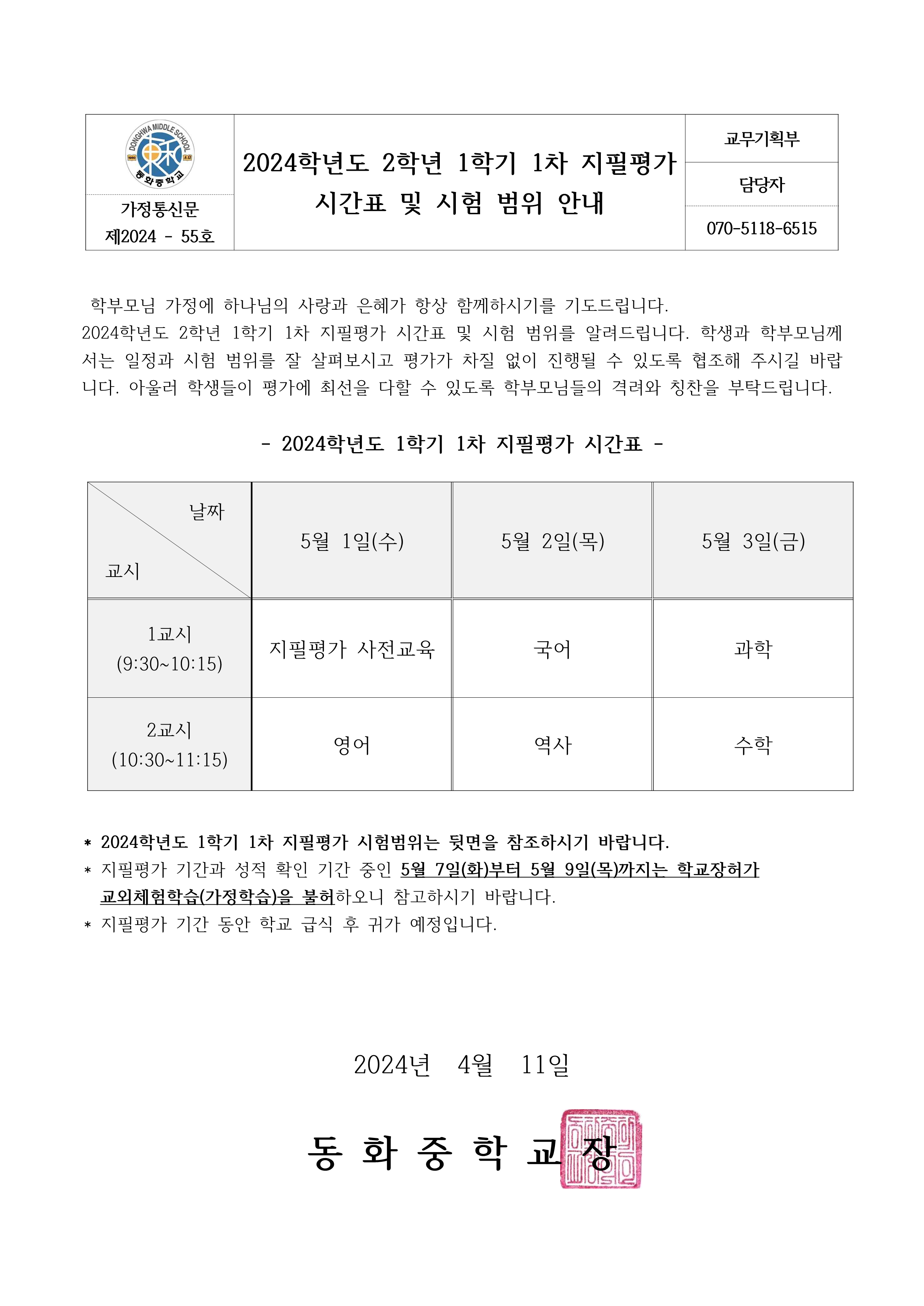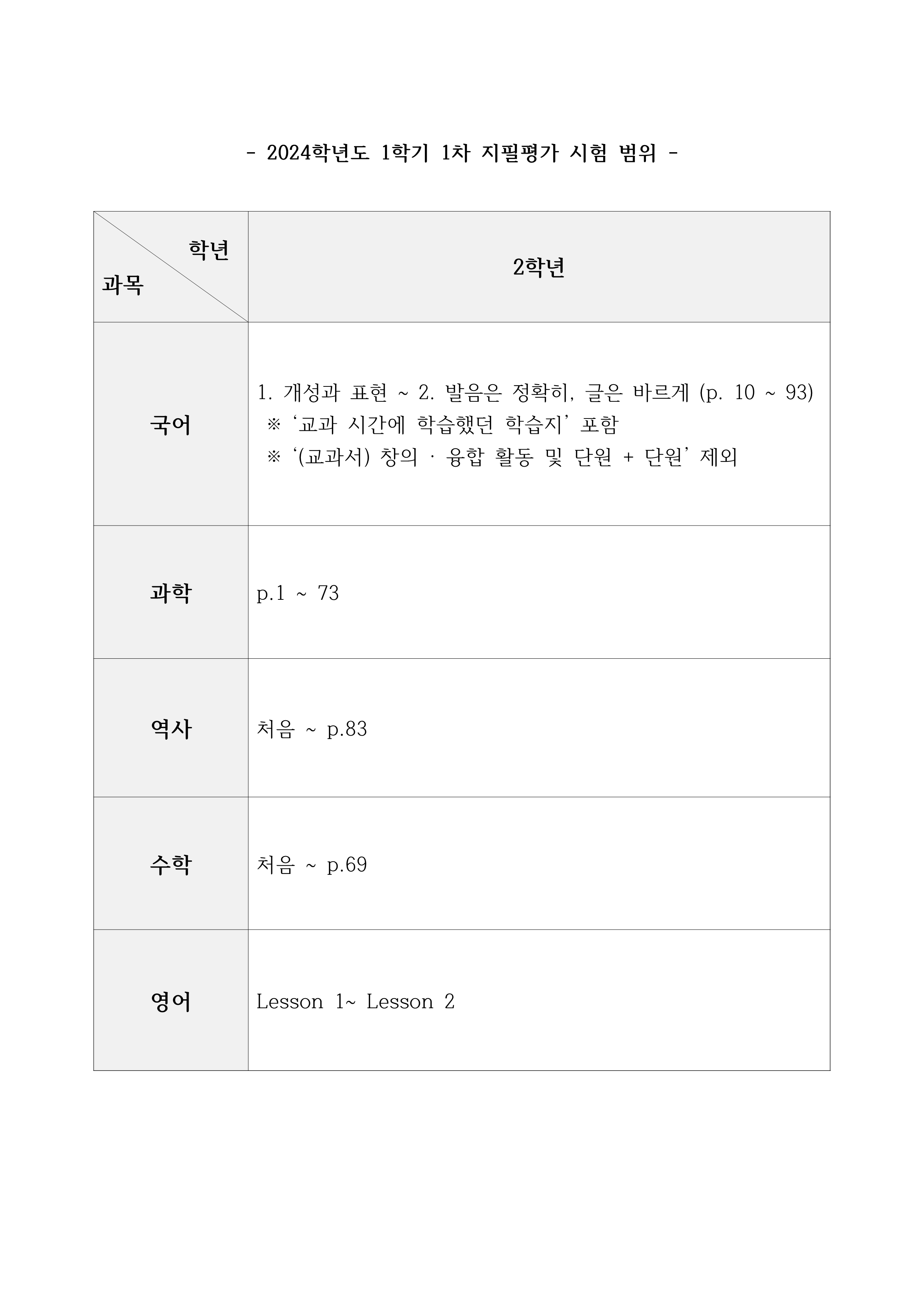 2024Çг⵵ 2Çгâ 1Çбâ 1Â÷ ÁöÇÊÆò°¡ ½Ã°£Ç¥ ¹× ½ÃÇè ¹üÀ§ ¾È³» °¡Á¤Åë½Å¹®