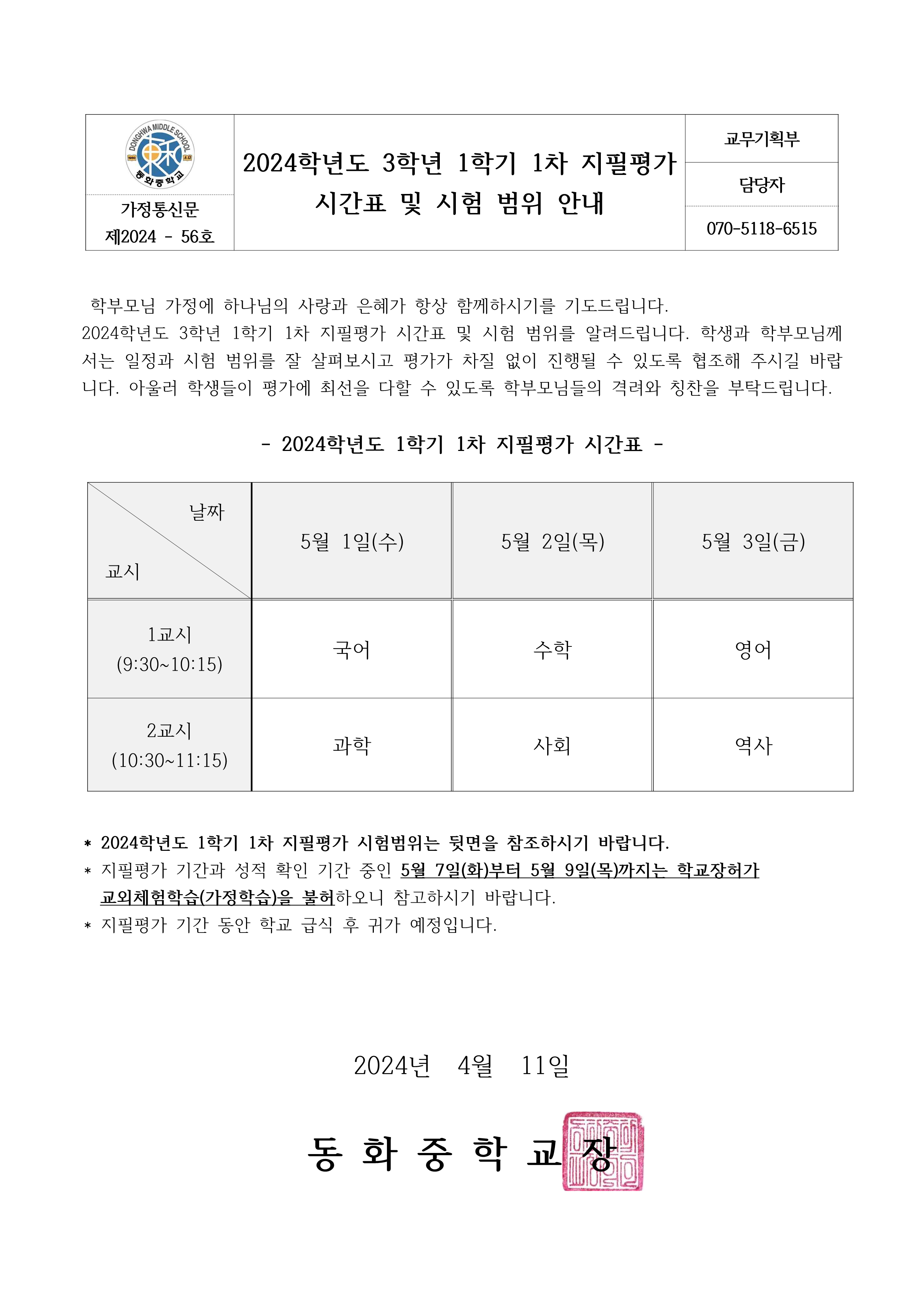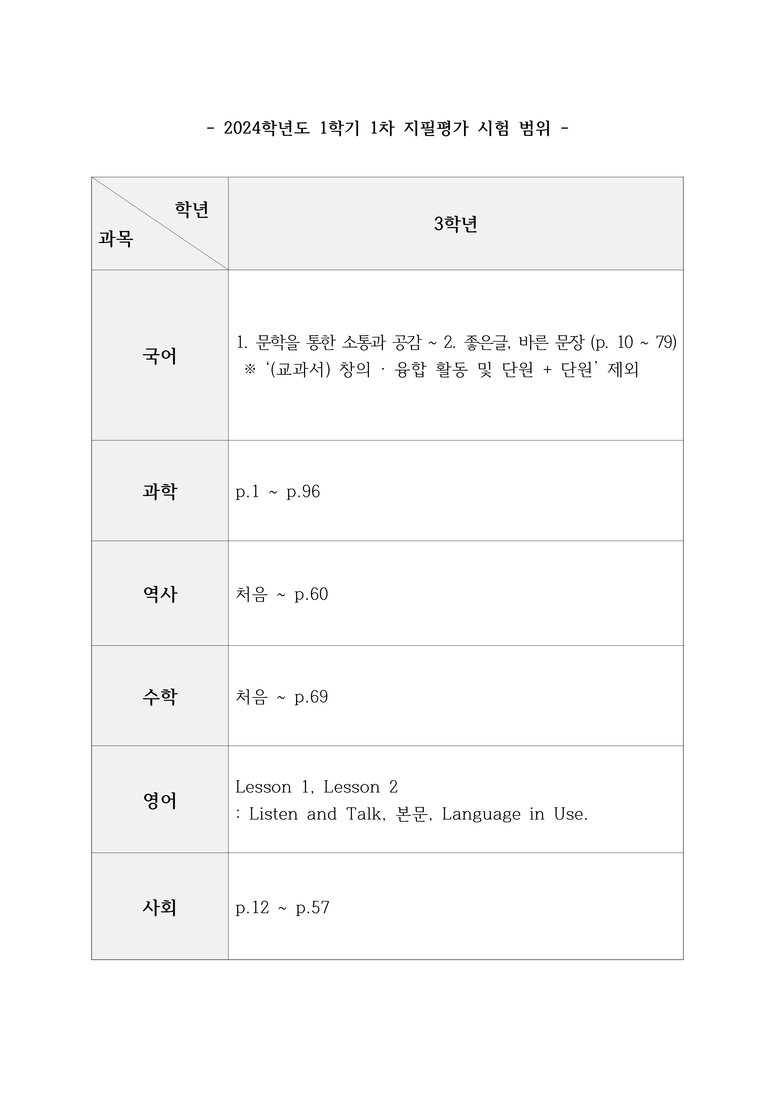 2024Çг⵵ 3Çгâ 1Çбâ 1Â÷ ÁöÇÊÆò°¡ ½Ã°£Ç¥ ¹× ½ÃÇè ¹üÀ§ ¾È³» °¡Á¤Åë½Å¹®
