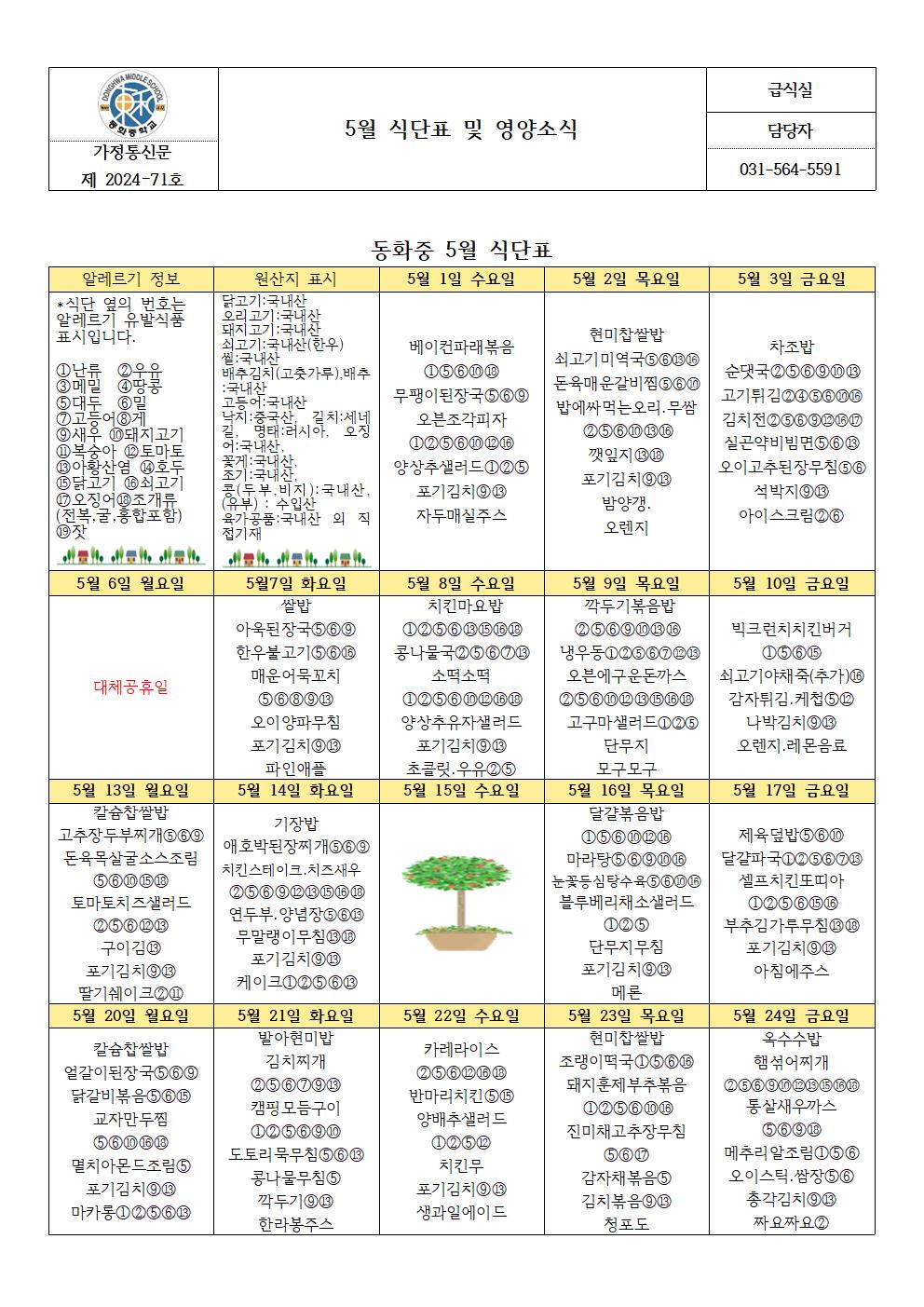 hwpÆÄÀÏ ¾ÆÀÌÄÜ 5¿ù ½Ä´ÜÇ¥ ¹× ¿µ¾ç¼Ò½Ä (µ¿È­Áß).hwp