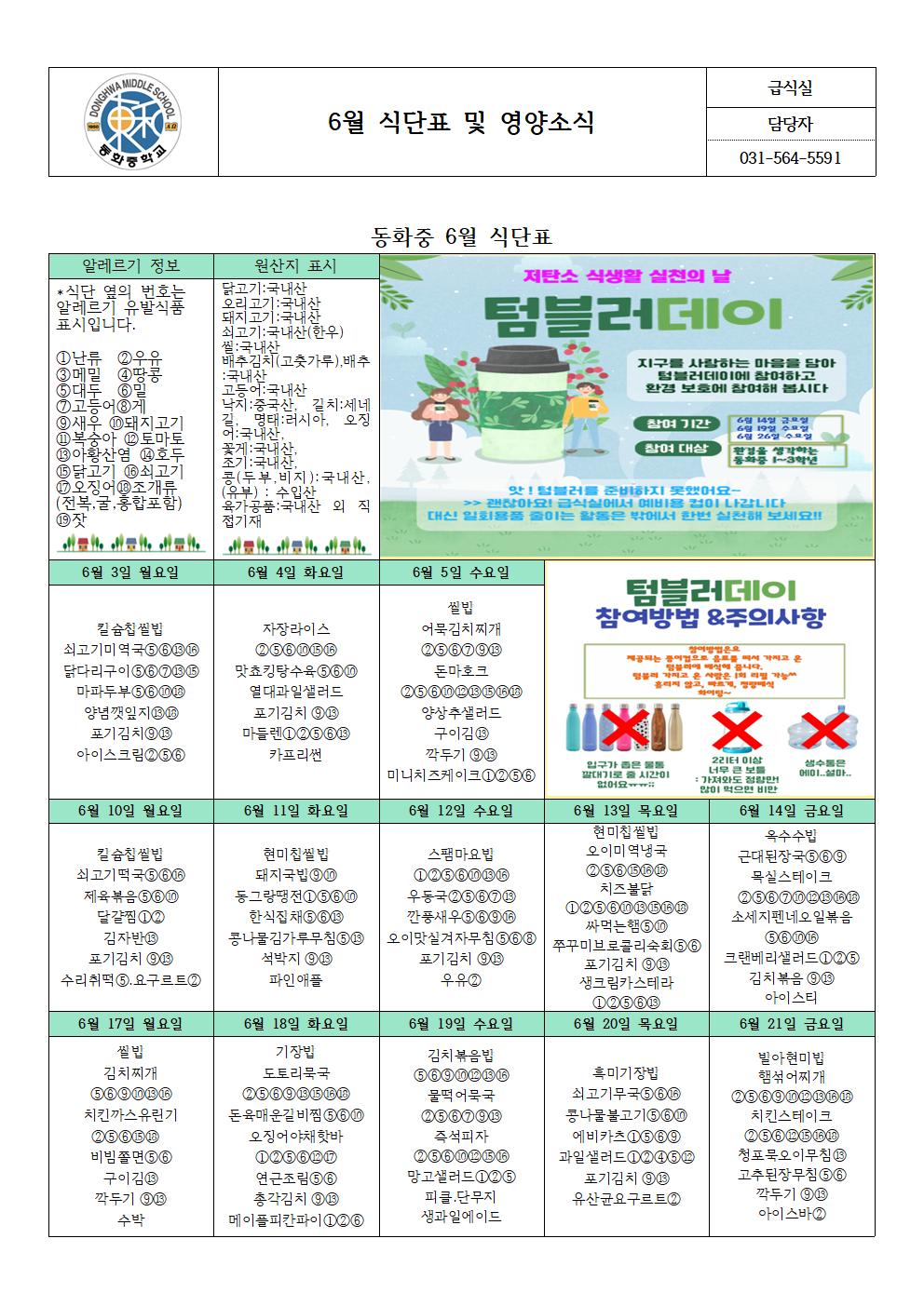 hwpÆÄÀÏ ¾ÆÀÌÄÜ 6¿ù ½Ä´ÜÇ¥ ¹× ¿µ¾ç¼Ò½Ä (µ¿È­Áß).hwp
