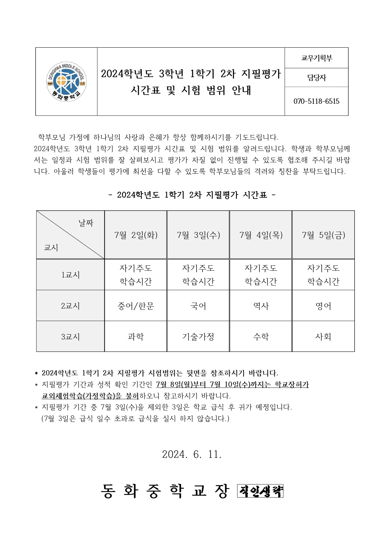 2024Çг⵵ 3Çгâ 1Çбâ 2Â÷ ÁöÇÊÆò°¡ ½Ã°£Ç¥ ¹× ½ÃÇè ¹üÀ§ ¾È³»