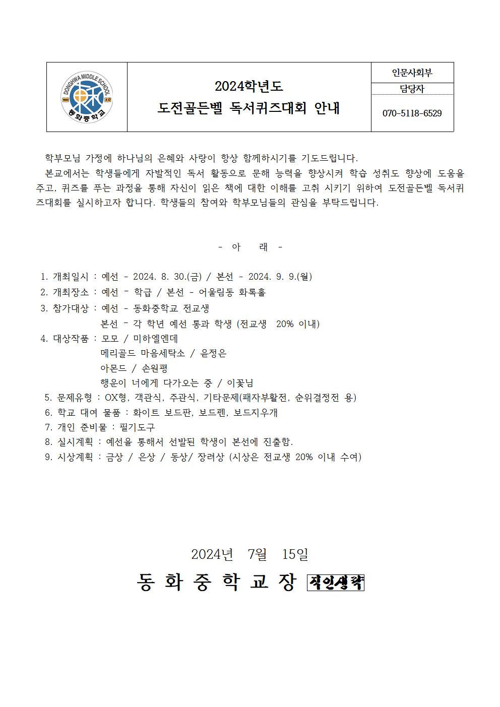 2024Çг⵵ µµÀü°ñµçº§ µ¶¼­ÄûÁî´ëȸ ¾È³»