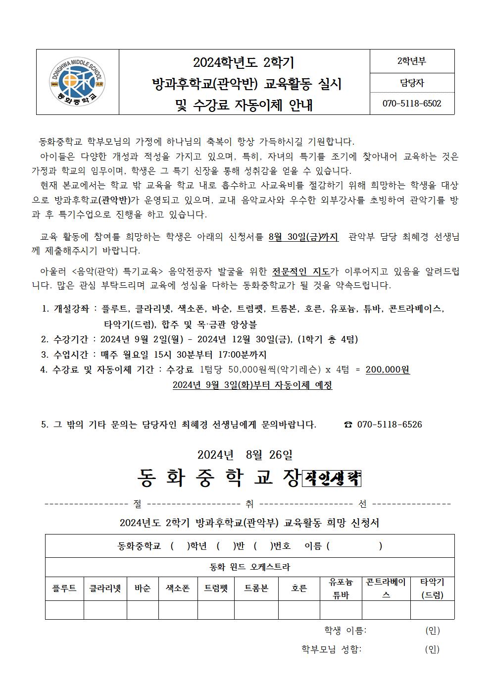 2024Çг⵵ 2Çб⠹æ°úÈÄÇб³(°ü¾Ç¹Ý) ±³À°È°µ¿ ½Ç½Ã ¹× ¼ö°­·á ÀÚµ¿ÀÌü ¾È³»
