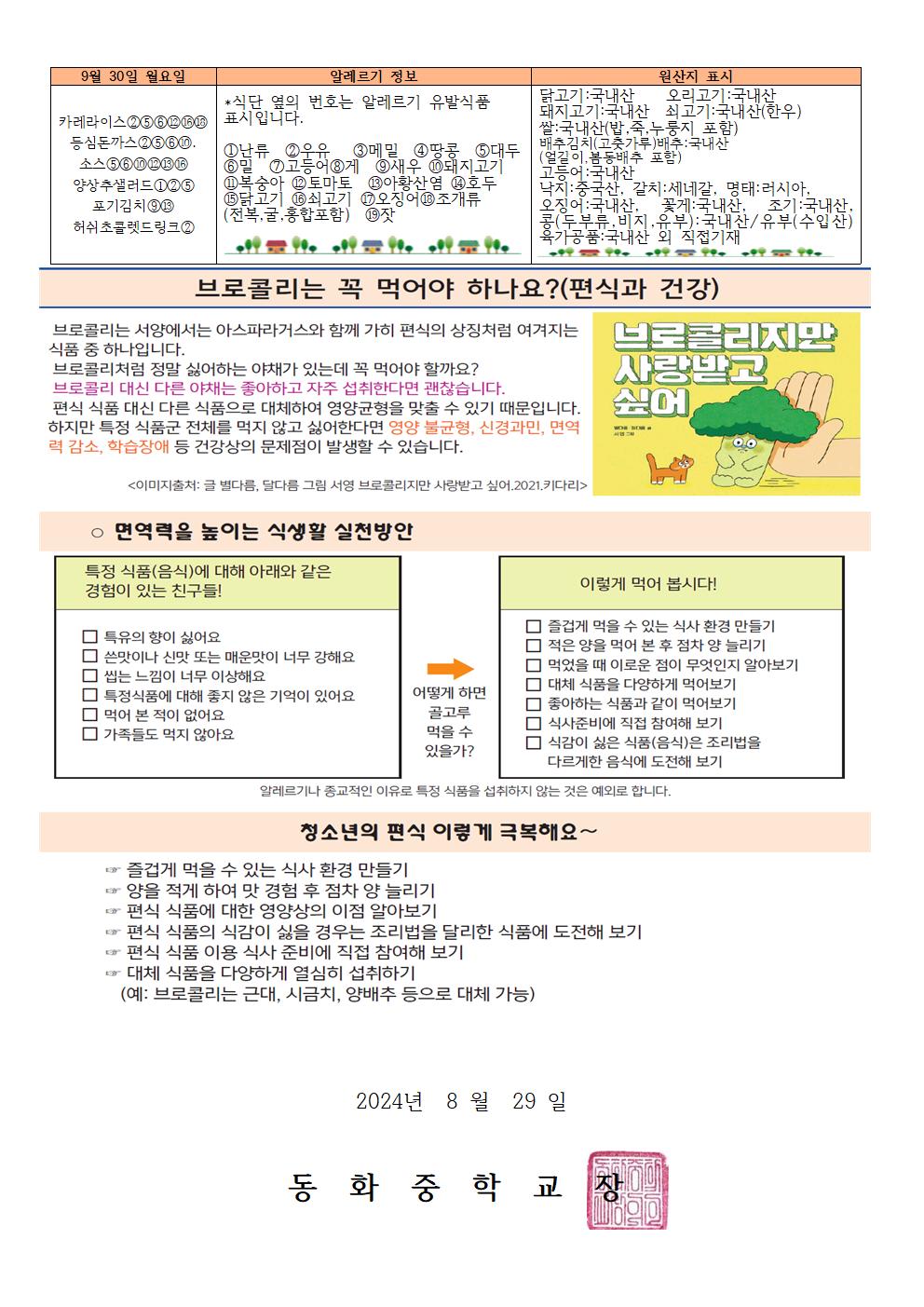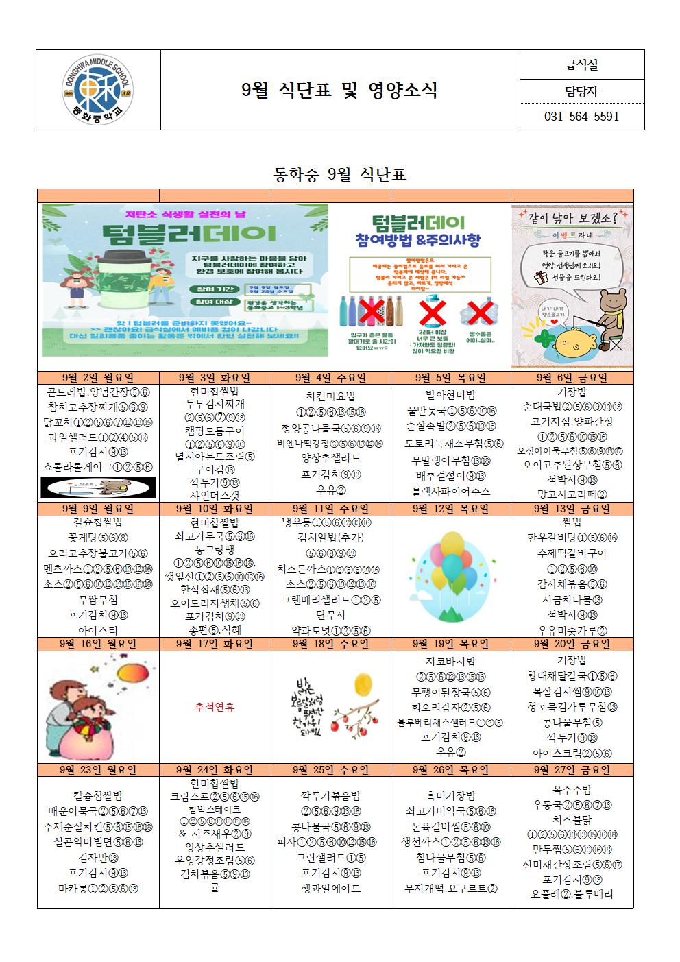 hwpÆÄÀÏ ¾ÆÀÌÄÜ 9¿ù ½Ä´ÜÇ¥ ¹× ¿µ¾ç¼Ò½Ä (µ¿È­Áß).hwp