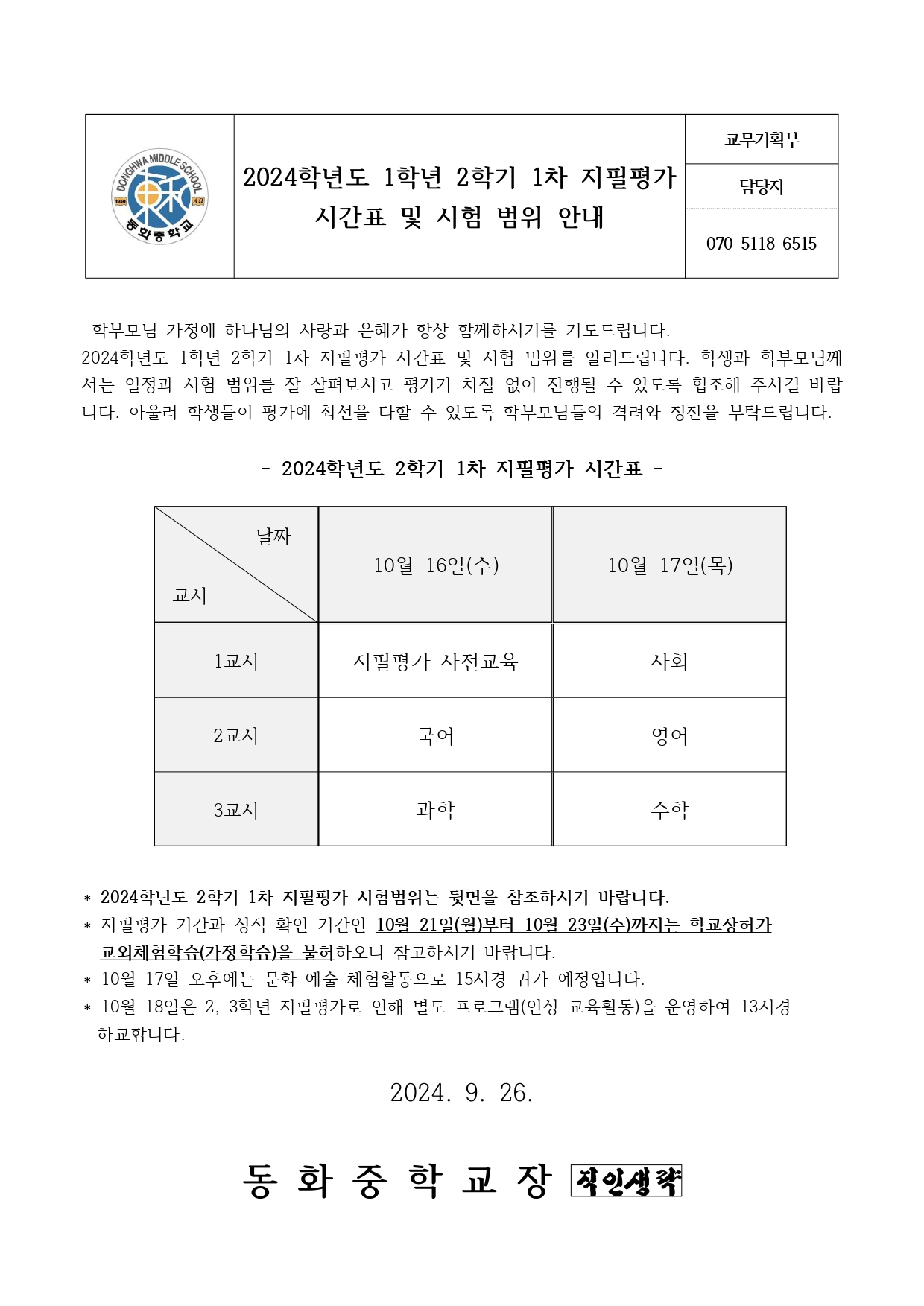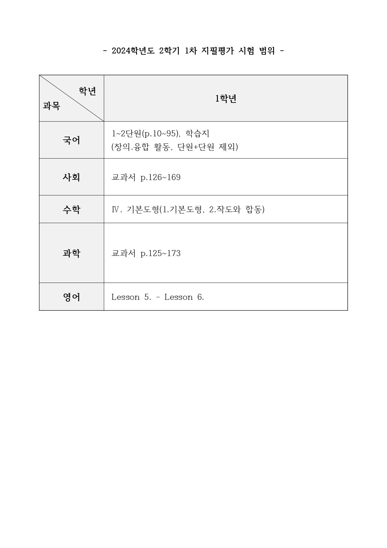 2024Çг⵵ 1Çгâ 2Çбâ 1Â÷ ÁöÇÊÆò°¡ ½Ã°£Ç¥ ¹× ½ÃÇè ¹üÀ§ ¾È³»