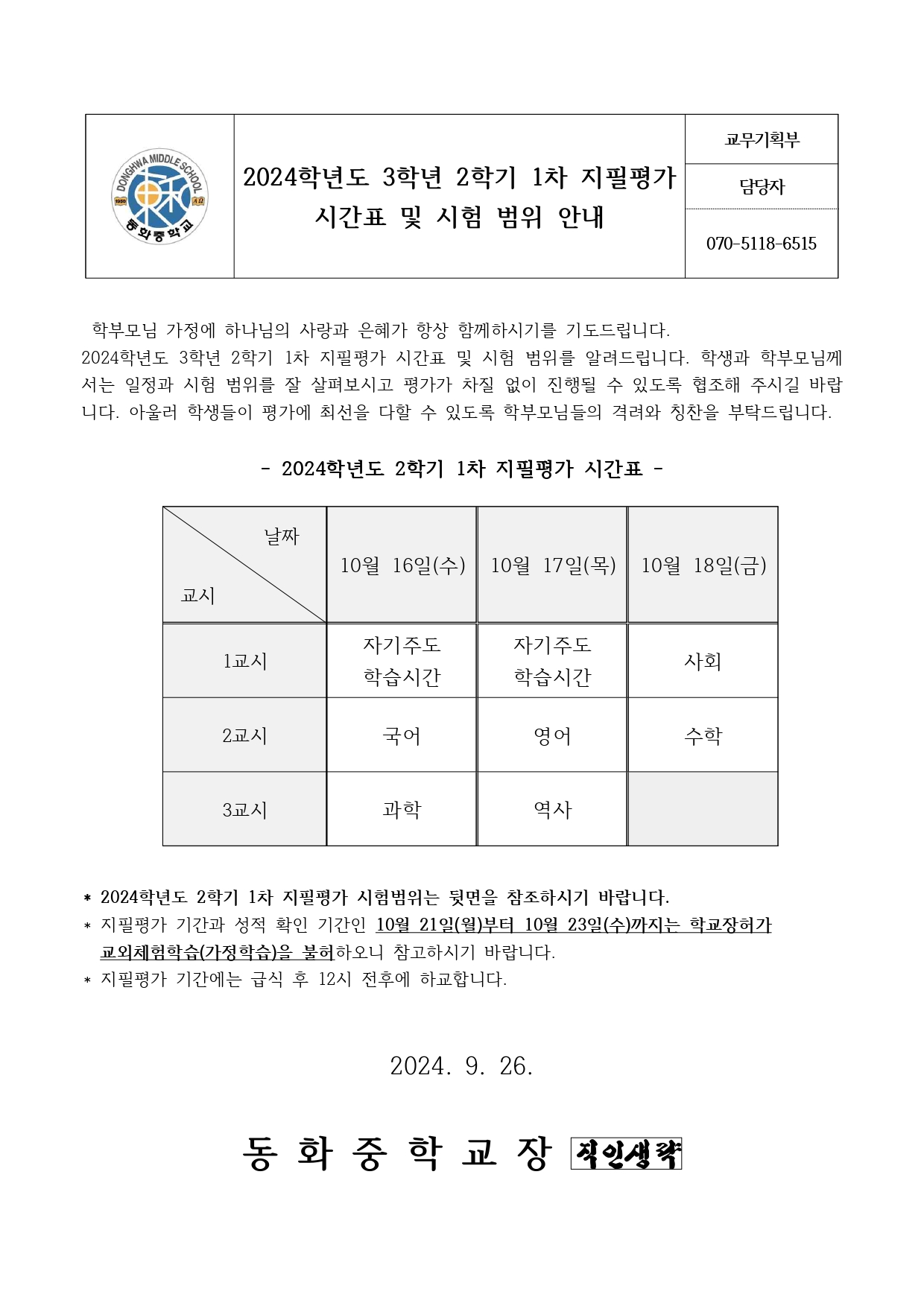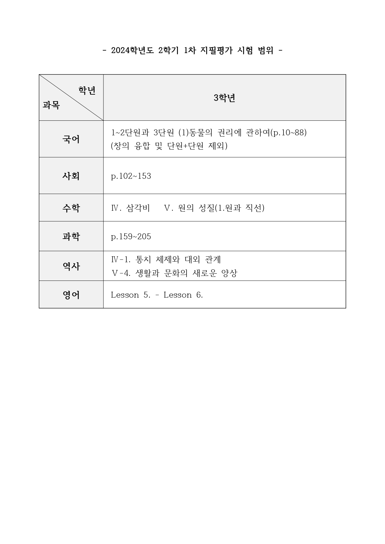 2024Çг⵵ 3Çгâ 2Çбâ 1Â÷ ÁöÇÊÆò°¡ ½Ã°£Ç¥ ¹× ½ÃÇè ¹üÀ§ ¾È³»