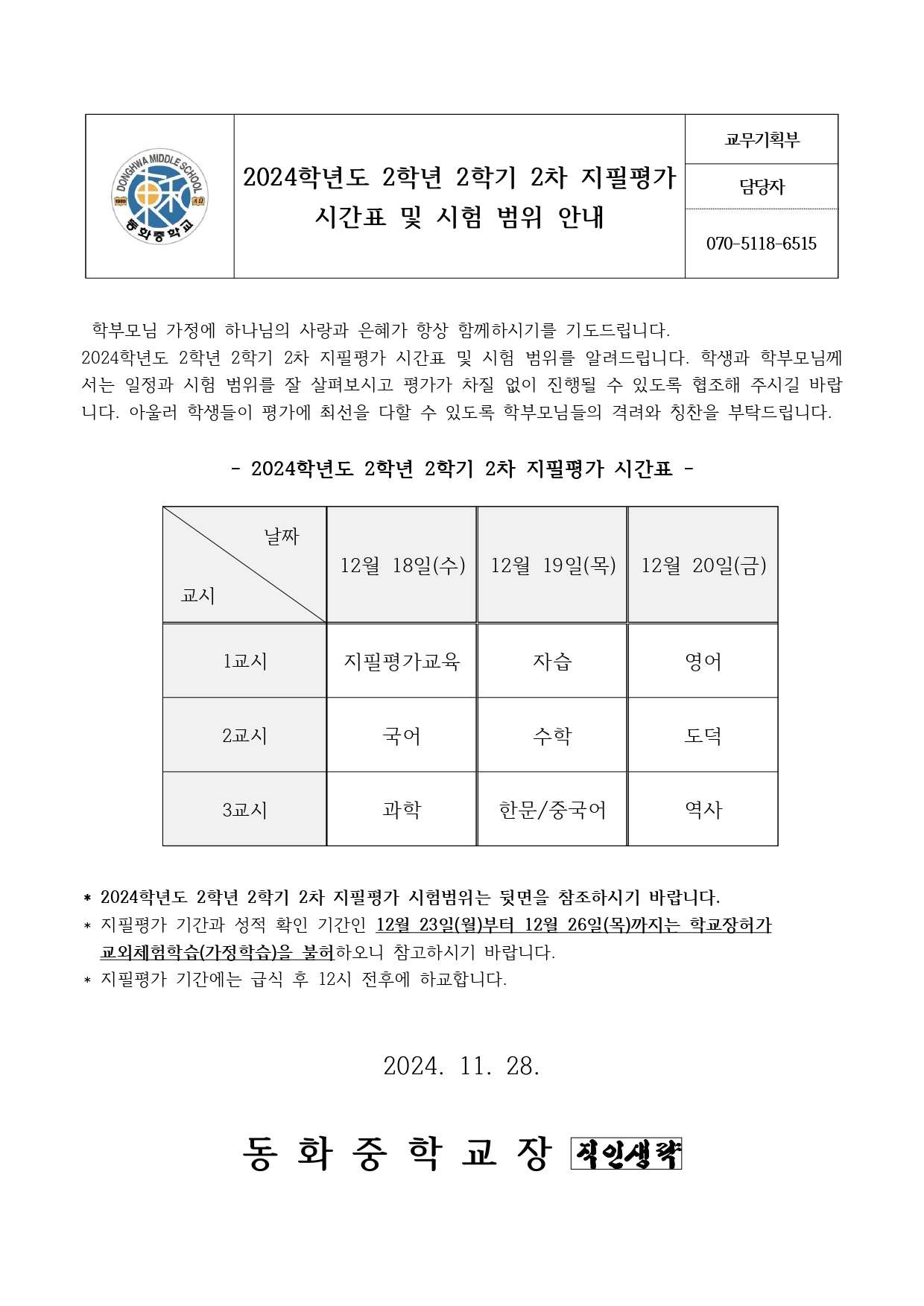 2024Çг⵵ 2Çгâ 2Çбâ 2Â÷ ÁöÇÊÆò°¡ ½Ã°£Ç¥ ¹× ½ÃÇè ¹üÀ§ ¾È³»