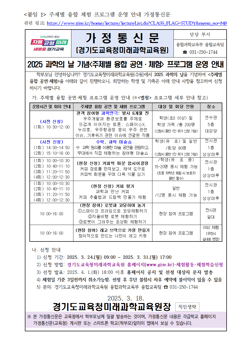 [°æ±âµµ±³À°Ã»¹Ì·¡°úÇб³À°¿ø]2025 °úÇÐÀÇ ³¯ ±â³ä ÇÁ·Î±×·¥ ¿î¿µ¾È³»