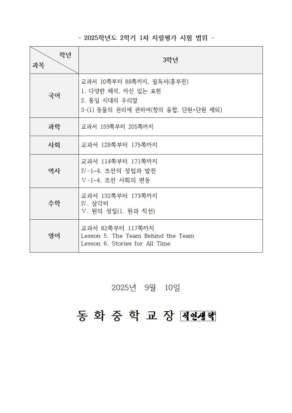 2025Çг⵵ 3Çгâ 2Çбâ 1Â÷ ÁöÇÊÆò°¡ ½Ã°£Ç¥ ¹× ½ÃÇè ¹üÀ§ ¾È³»