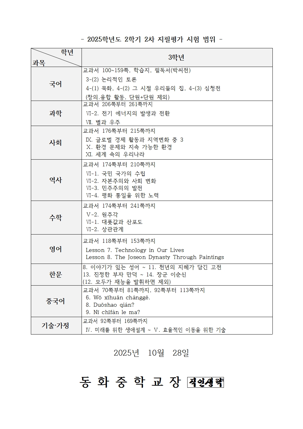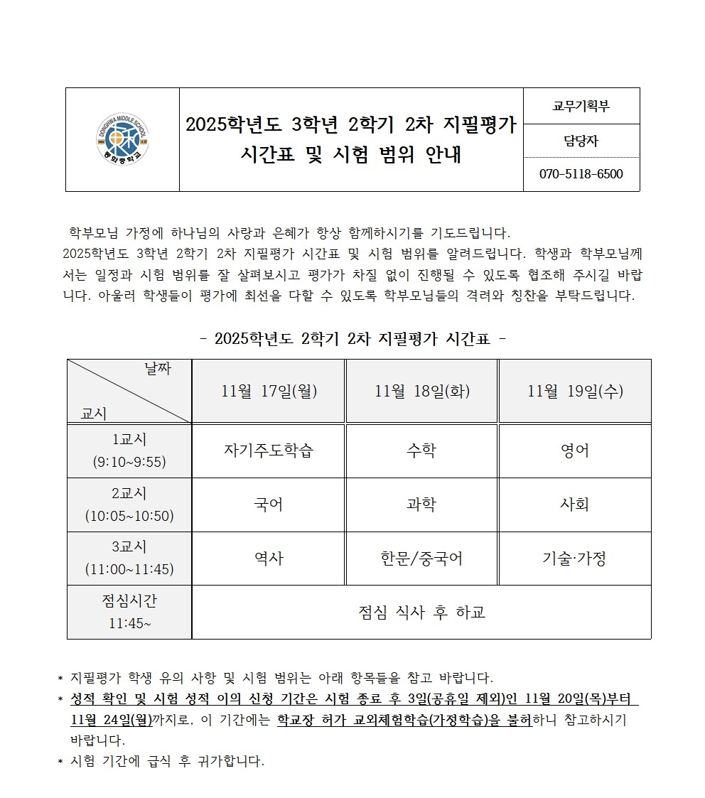 2025Çг⵵ 3Çгâ 2Çбâ 2Â÷ ÁöÇÊÆò°¡ ½Ã°£Ç¥ ¹× ½ÃÇè ¹üÀ§ ¾È³»