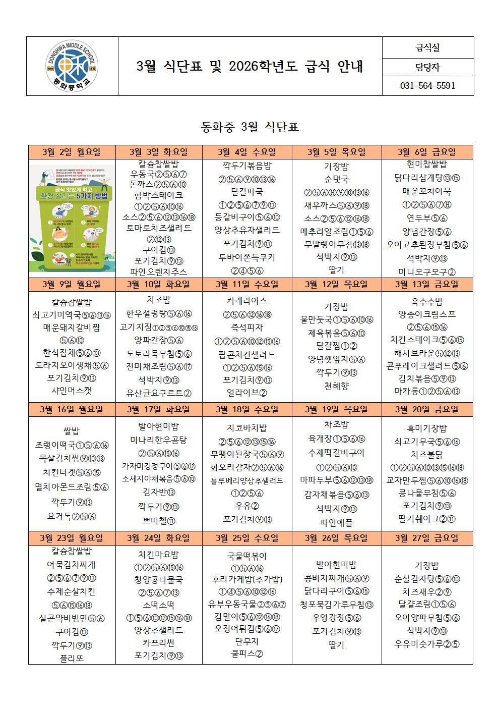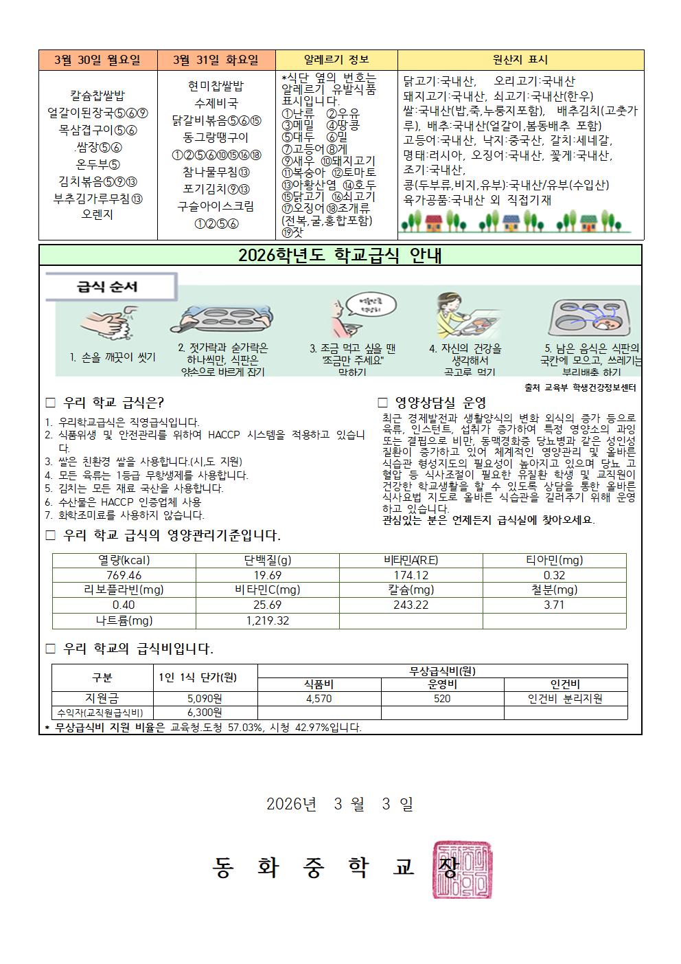 hwpÆÄÀÏ ¾ÆÀÌÄÜ 3¿ù ½Ä´ÜÇ¥ ¹× 2026Çг⵵ ±Þ½Ä¾È³» (µ¿È­Áß).hwp