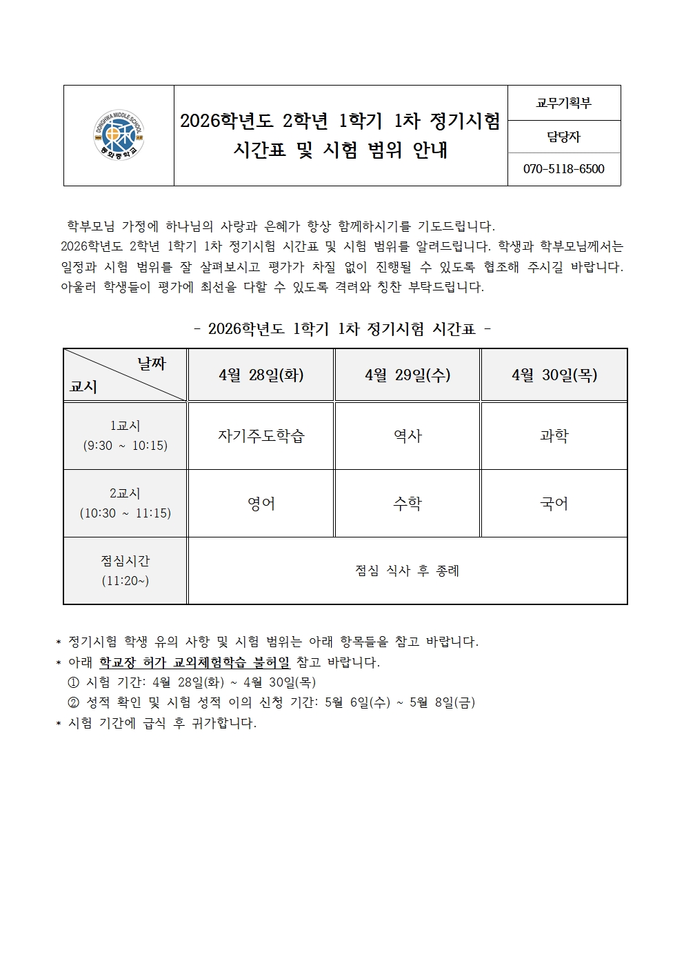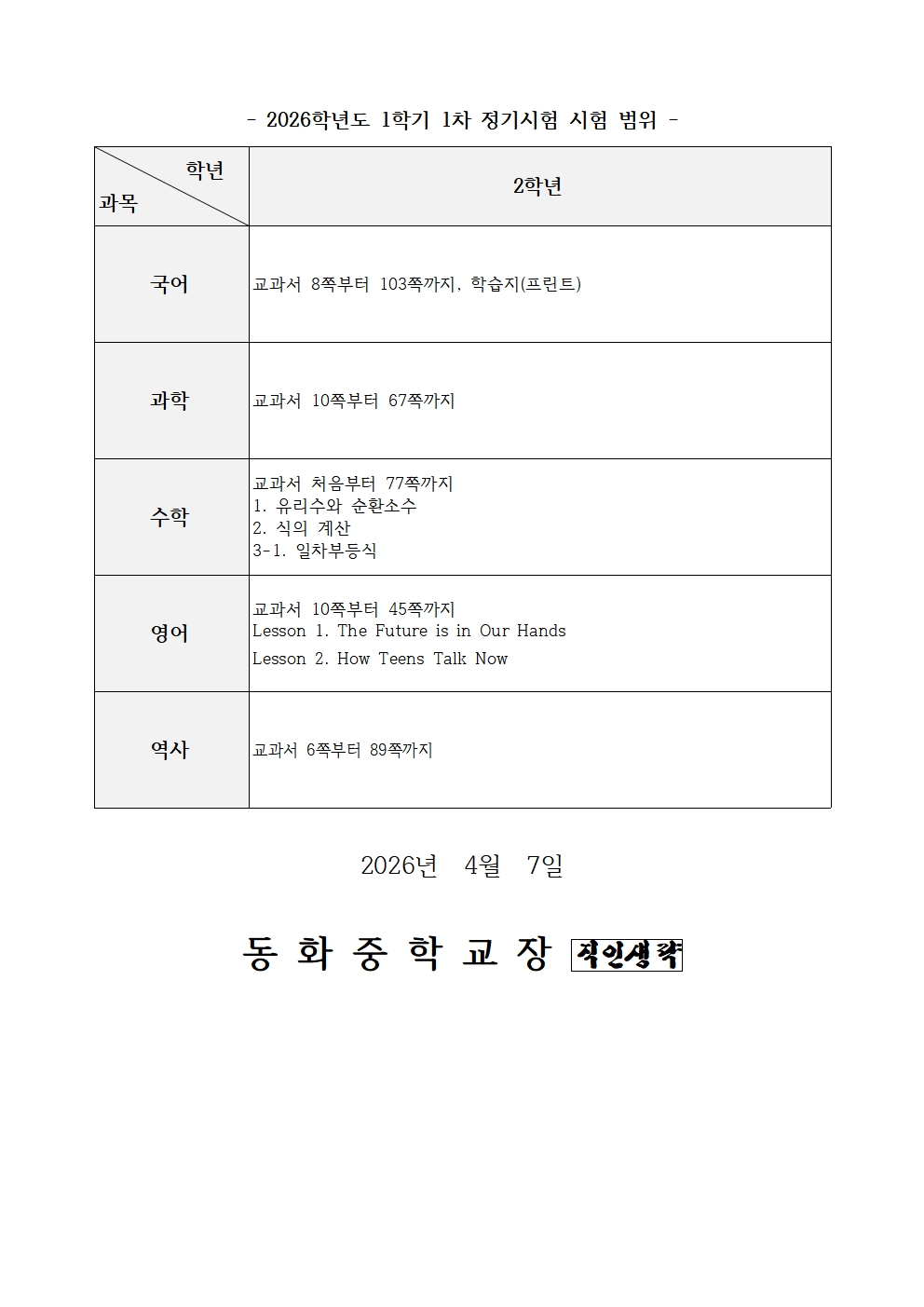 2026Çг⵵ 2Çгâ 1Çбâ 1Â÷ Á¤±â½ÃÇè ½Ã°£Ç¥ ¹× ½ÃÇè ¹üÀ§ ¾È³»