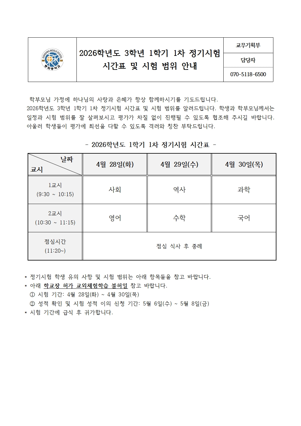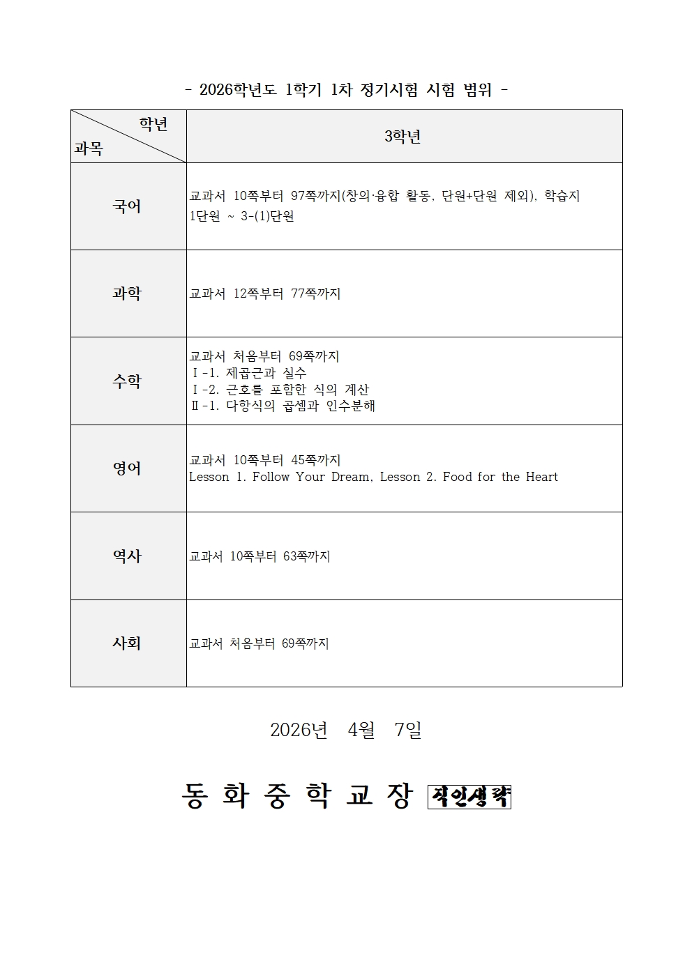 2026Çг⵵ 3Çгâ 1Çбâ 1Â÷ Á¤±â½ÃÇè ½Ã°£Ç¥ ¹× ½ÃÇè ¹üÀ§ ¾È³»