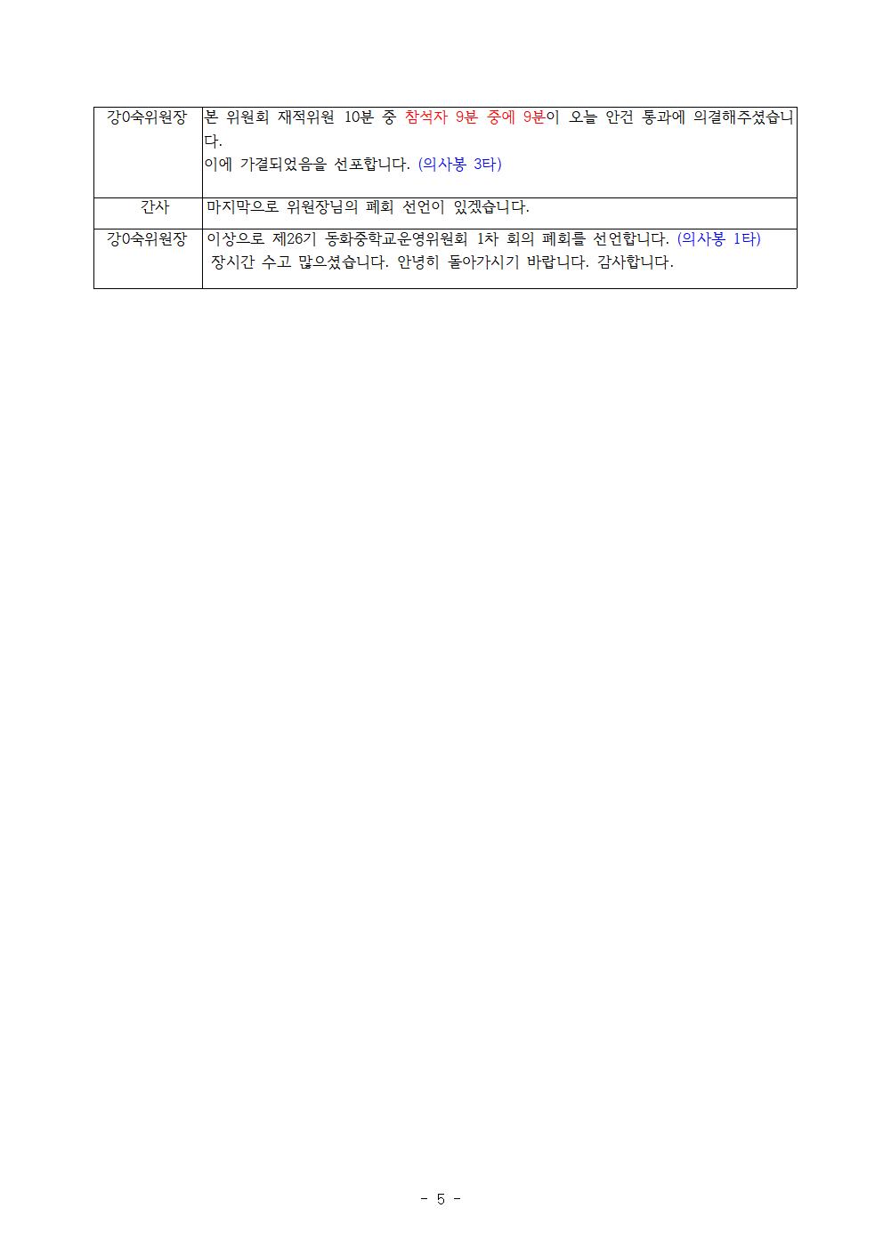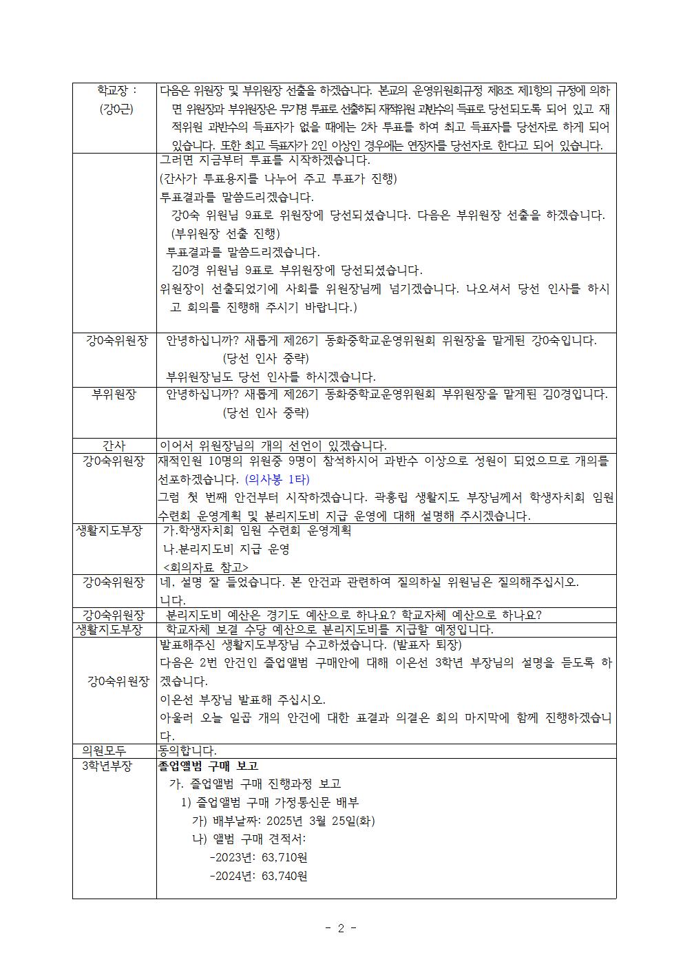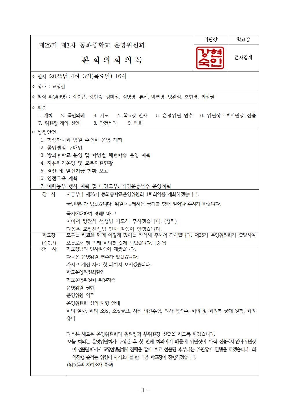 Á¦26±â µ¿È­ÁßÇб³ ¿î¿µÀ§¿øÈ¸ 1Â÷ ȸÀÇ·Ï